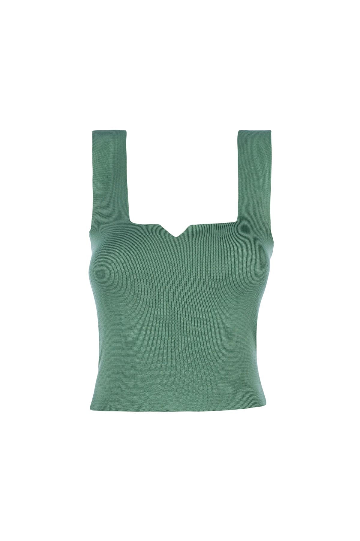Thick-strapped Crop Knitwear, which differs from other blouses with thick straps and chest cut details, can be combined with a denim skirt and sneakers in summer, and with mom jeans in casual chic in winter.