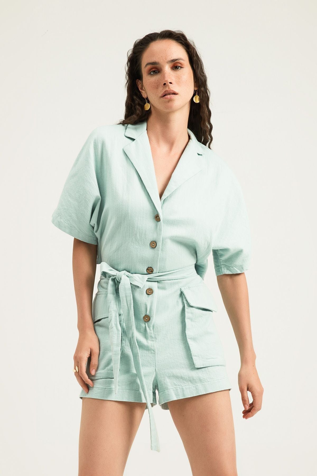 Tie Waist Short Sleeve Jumpsuit Mint