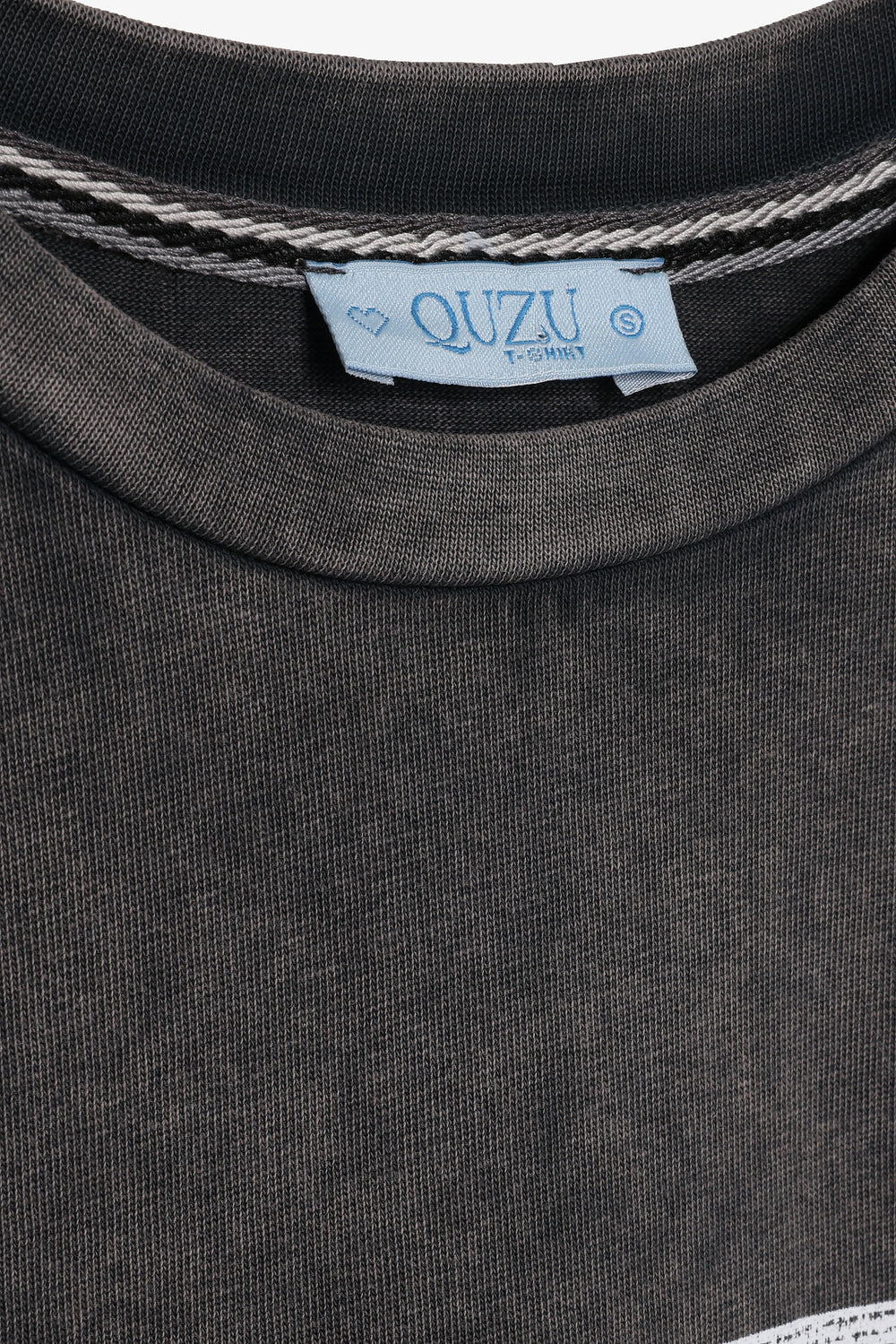 Yıkamalı Paris Baskılı Oversize Tişört Antrasit