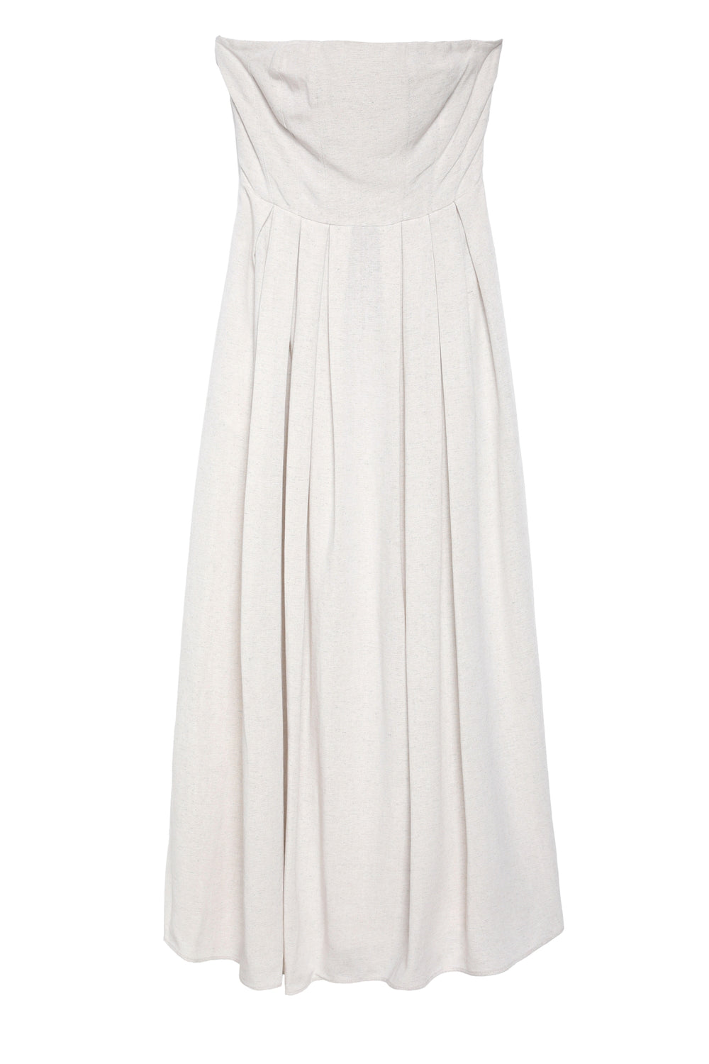 Straplez Detaylı Uzun Keten Elbise Naturel
