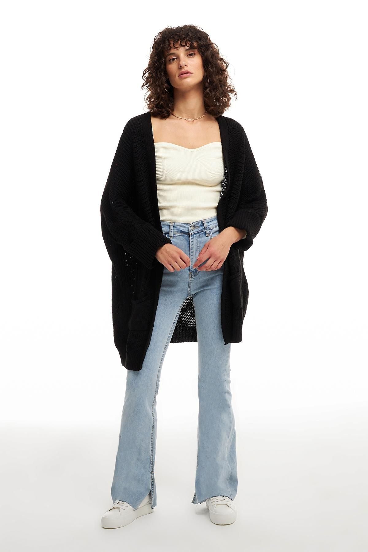 Long sleeve, oversize cut, soft texture, pockets, long cardigan.
