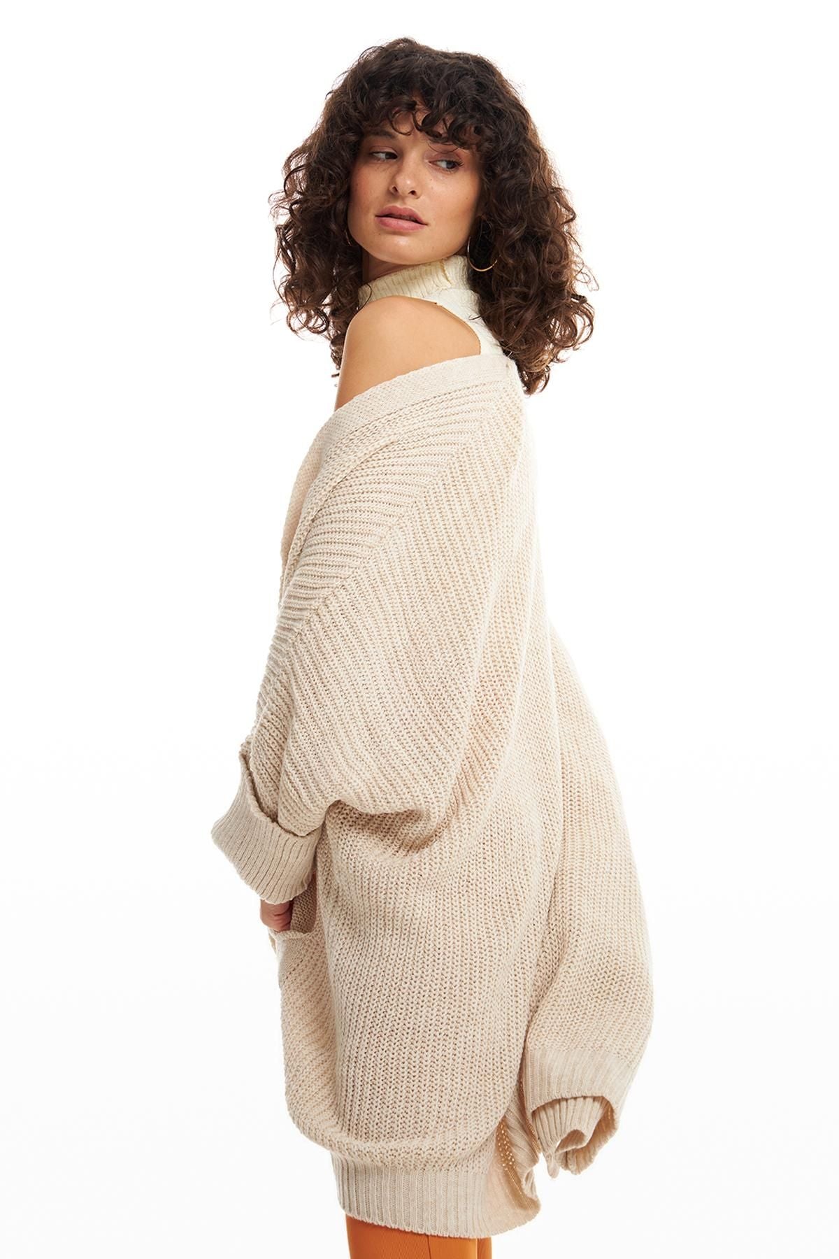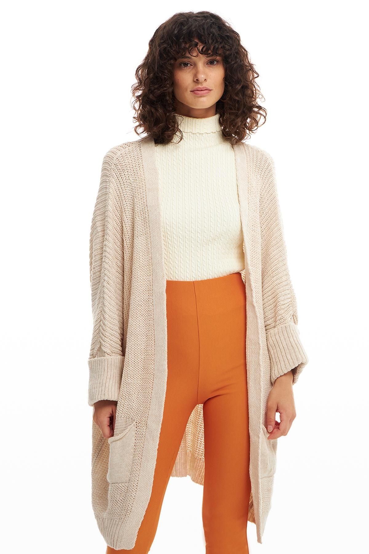 Long sleeve, oversize cut, soft texture, pockets, long cardigan.