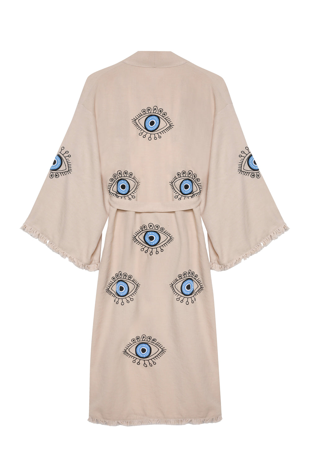 Embroidered Back Tasseled Kimono Beige