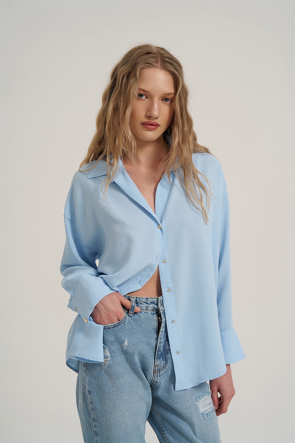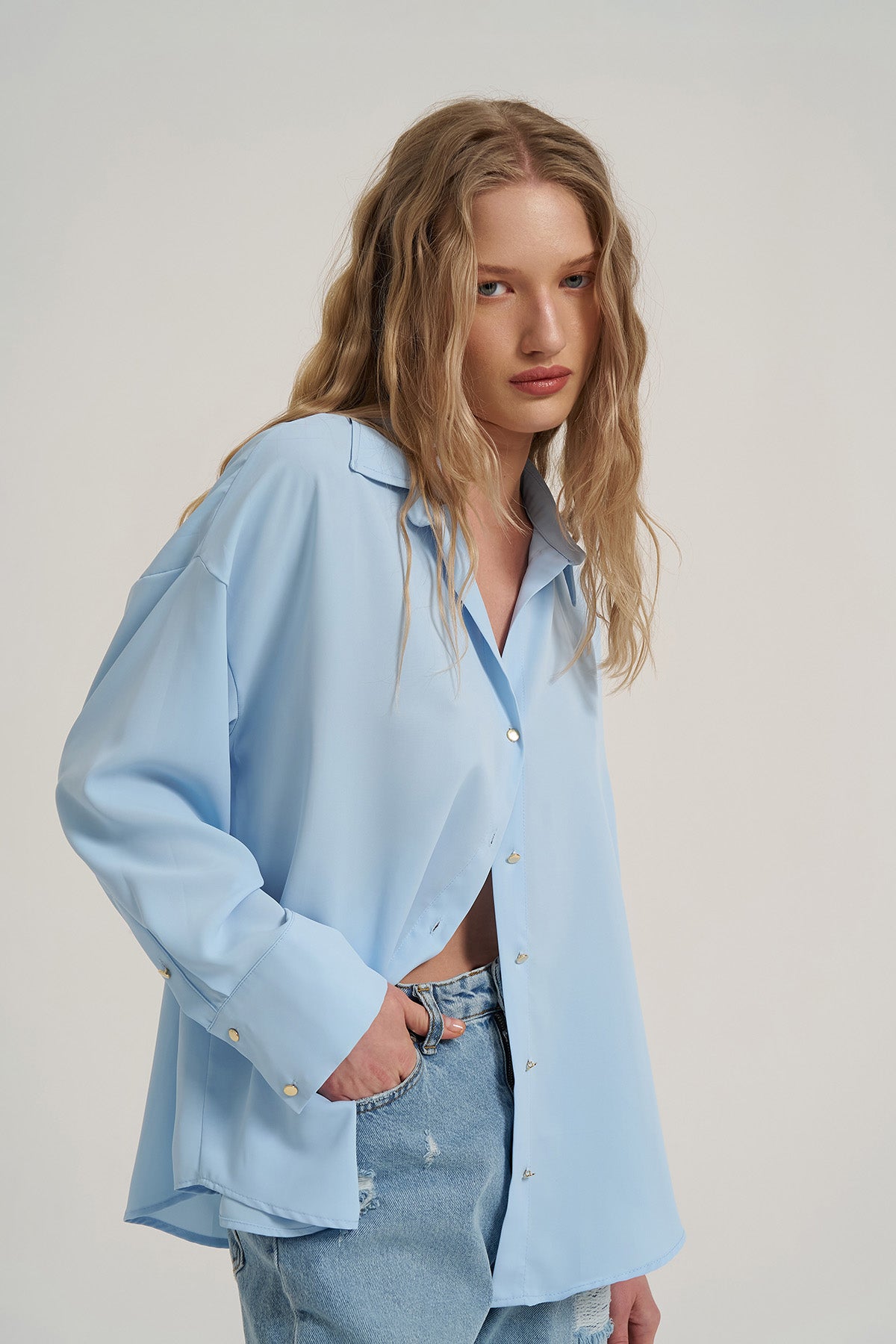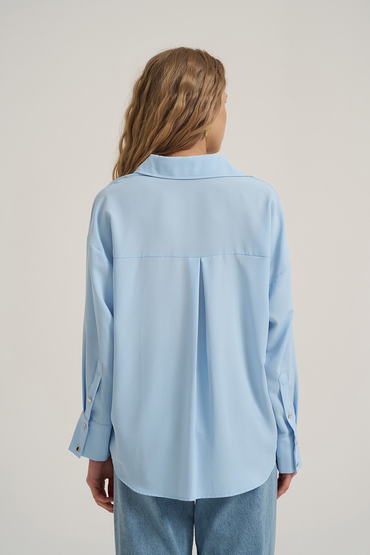 Gold düğmelİ, uzun kollu, oversİze, basİc gömlek.