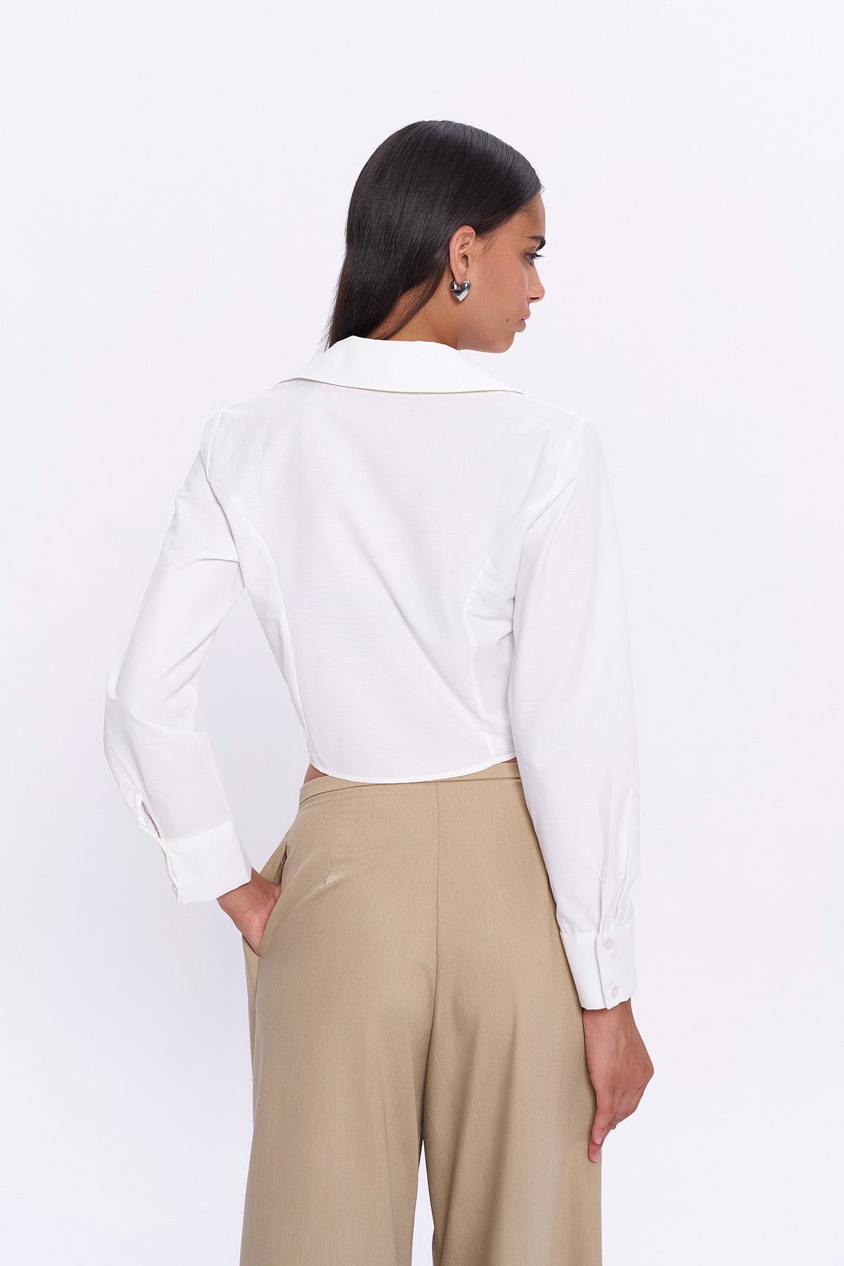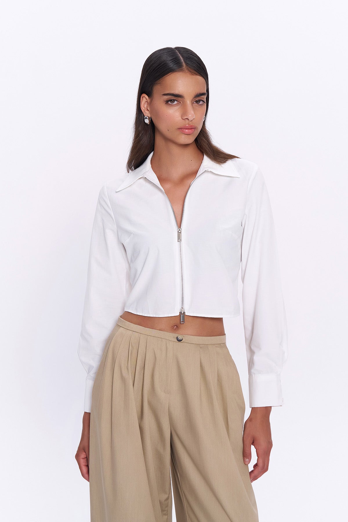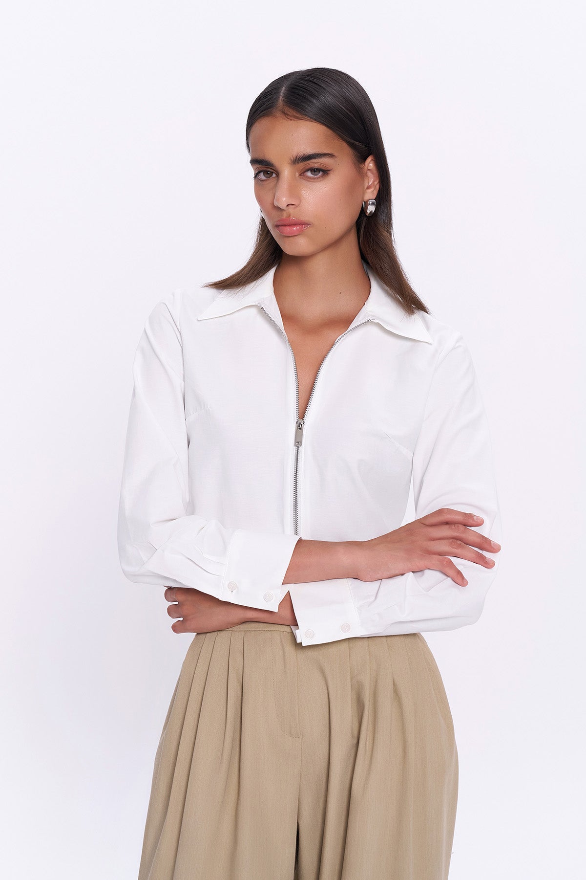Önden Fermuar Detaylı Gömlek Ekru