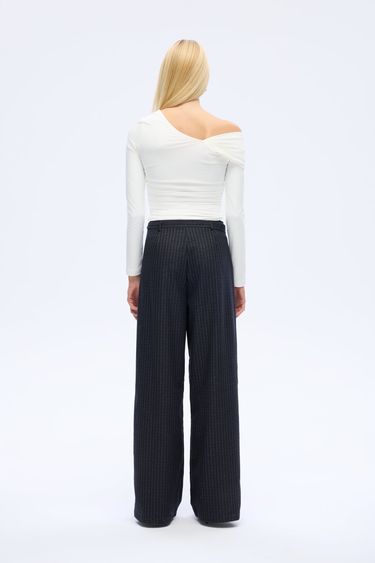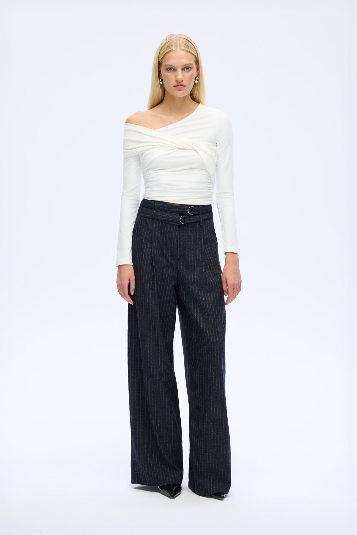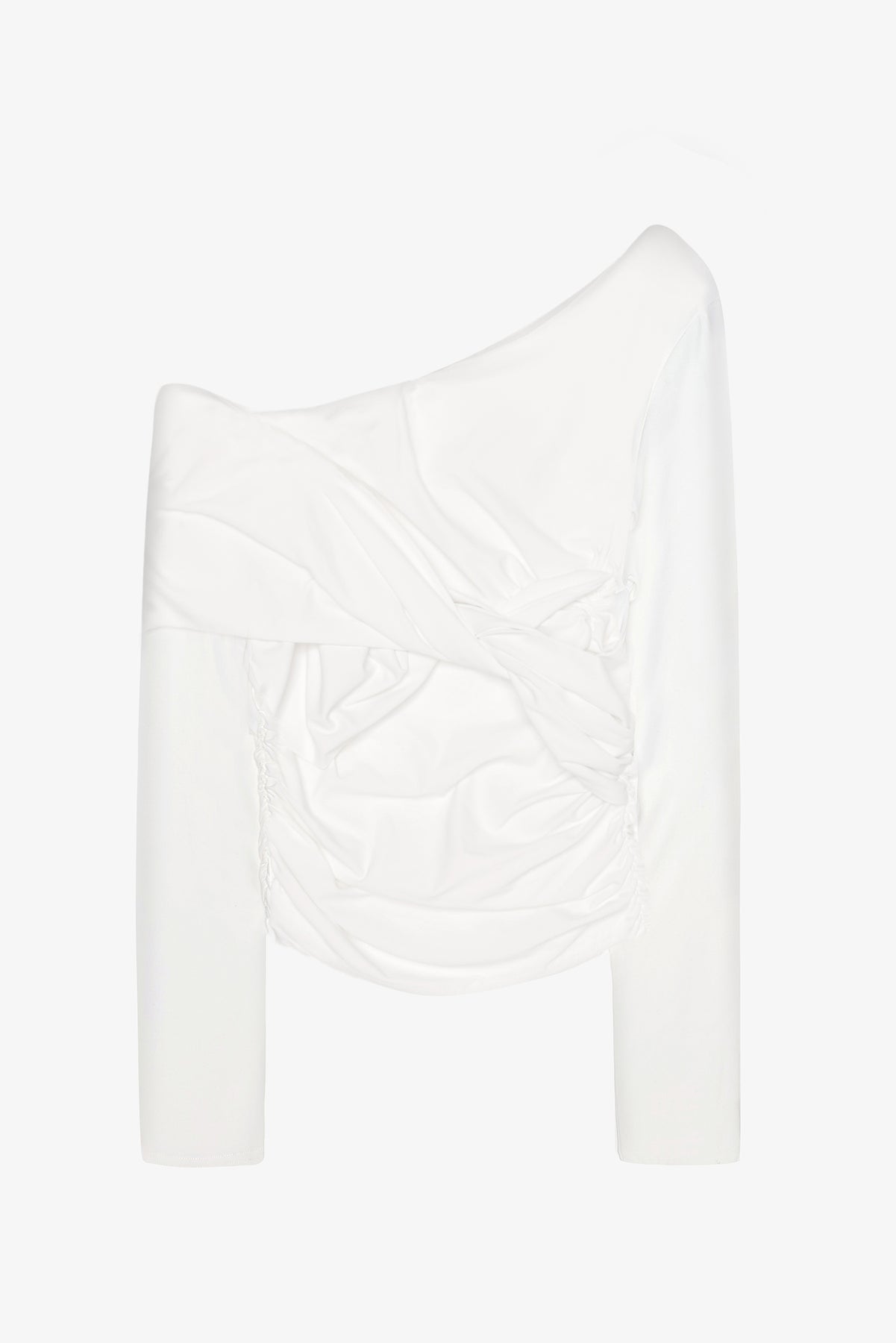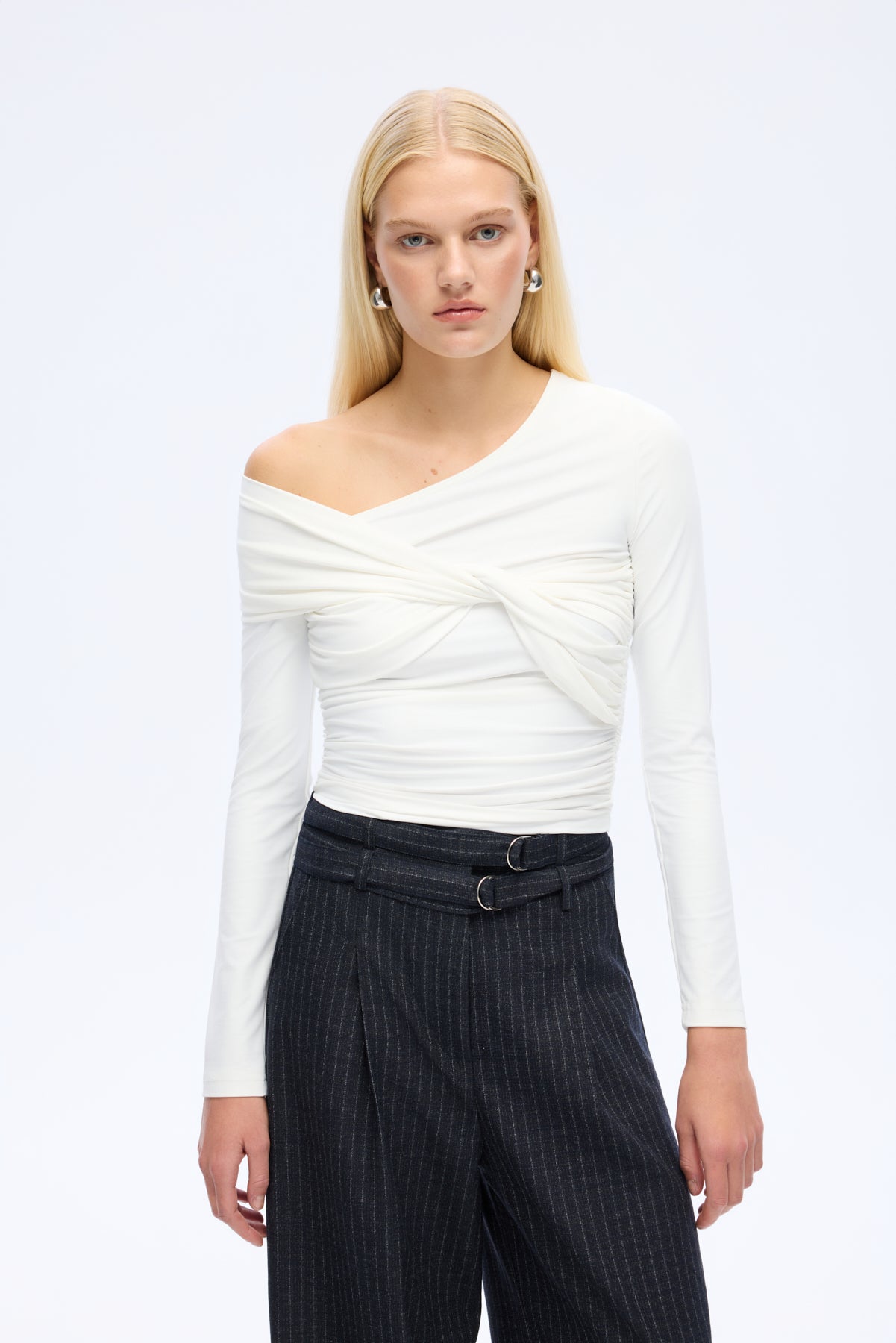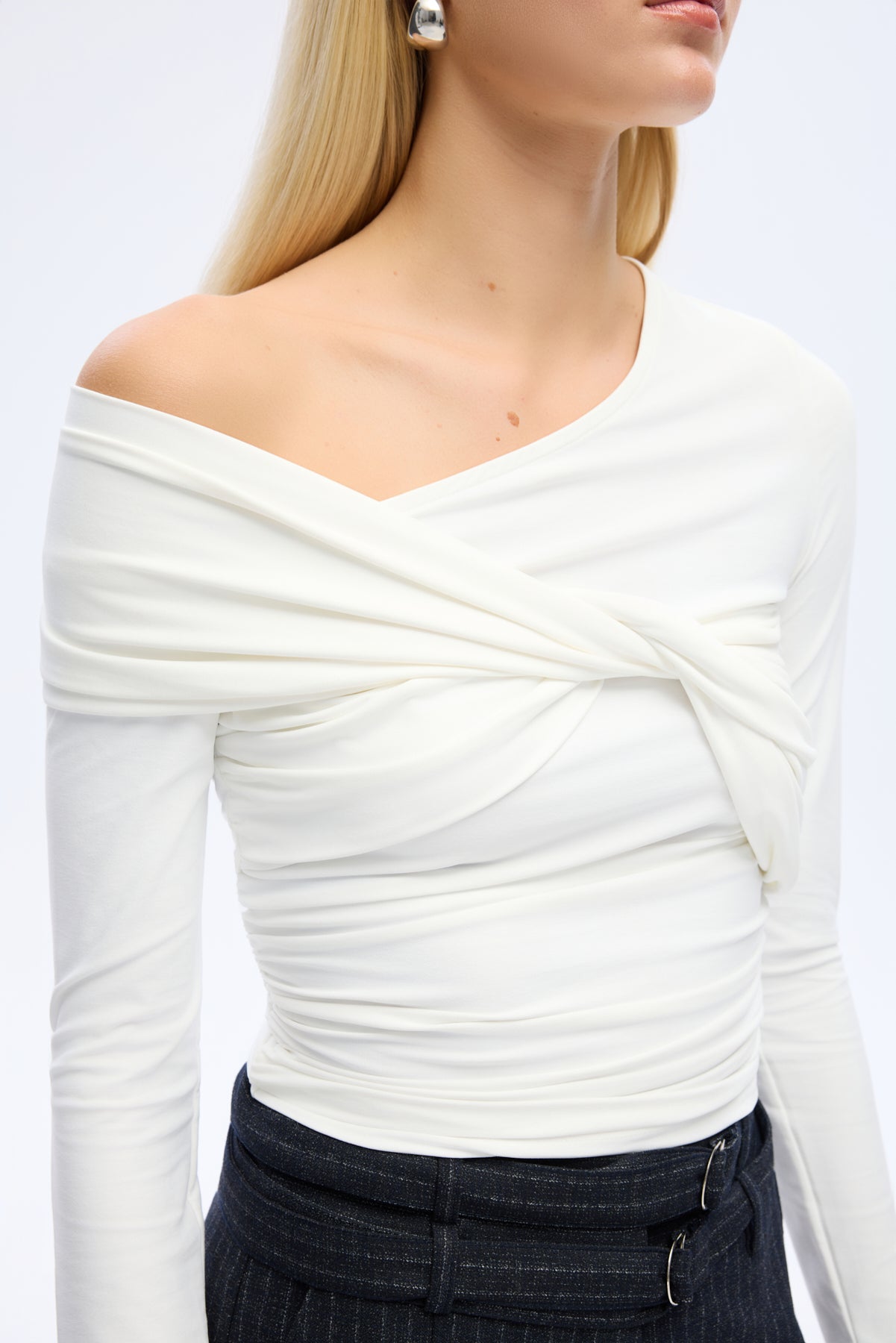 Drapeli Asimetrik Düğümlü Bluz Ekru