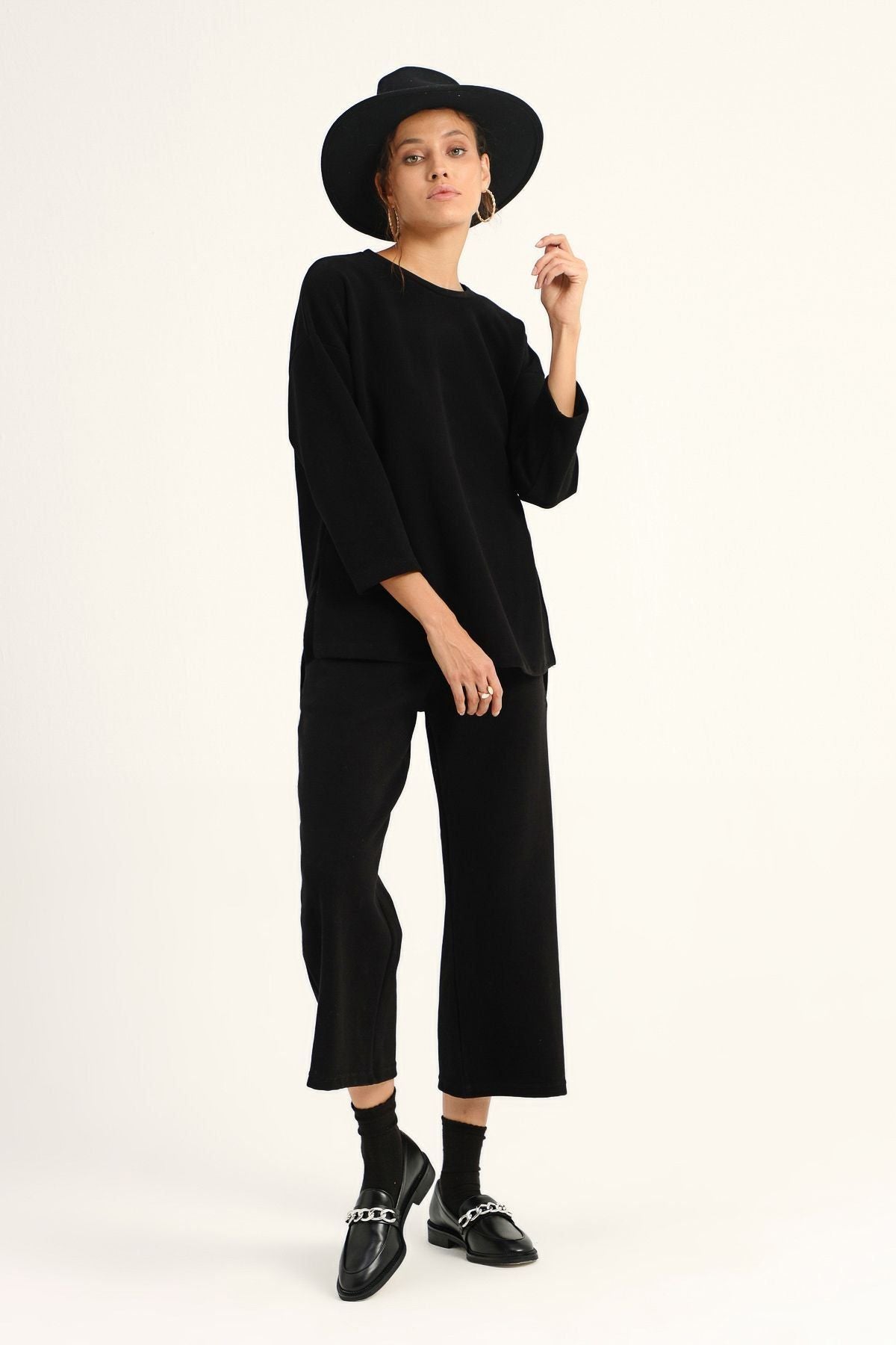 Under all conditions and conditions, the zero-neck long women's sweatshirt model can add joy to every day! Long sweatshirt model, which makes a difference with ¾ sleeve details for basic lovers, can't wait to take its place among the must-haves of your closet!