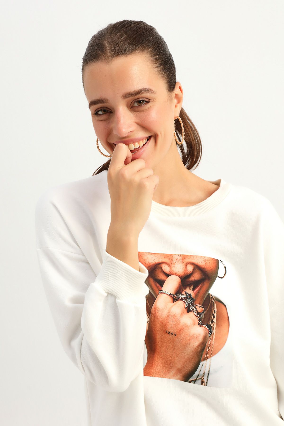 Are you ready to meet the sweatshirt that is ready to easily take its place in the most special combinations with its magnificent cotton texture and modern form?