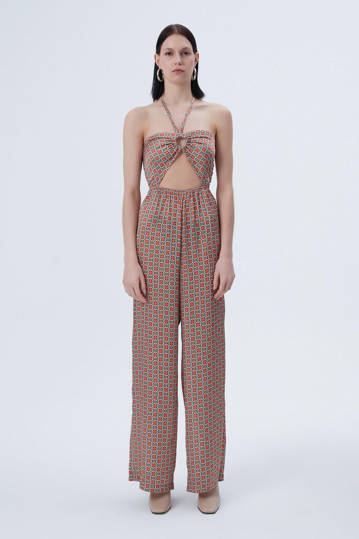 The patterned and halterneck jumpsuit model allows you to reflect your style in one piece with its stylish and fun details. The elastic structure of the front and back of the wide-leg overalls model allows it to grip its body comfortably. With its modern and stylish design, the jumpsuit model with window detail is one of the pieces that will carry your style from day to night. The pocketed jumpsuit model is a candidate to be one of the favorite pieces of the season with its modern design. The back is gipped, it grips the back elastically.