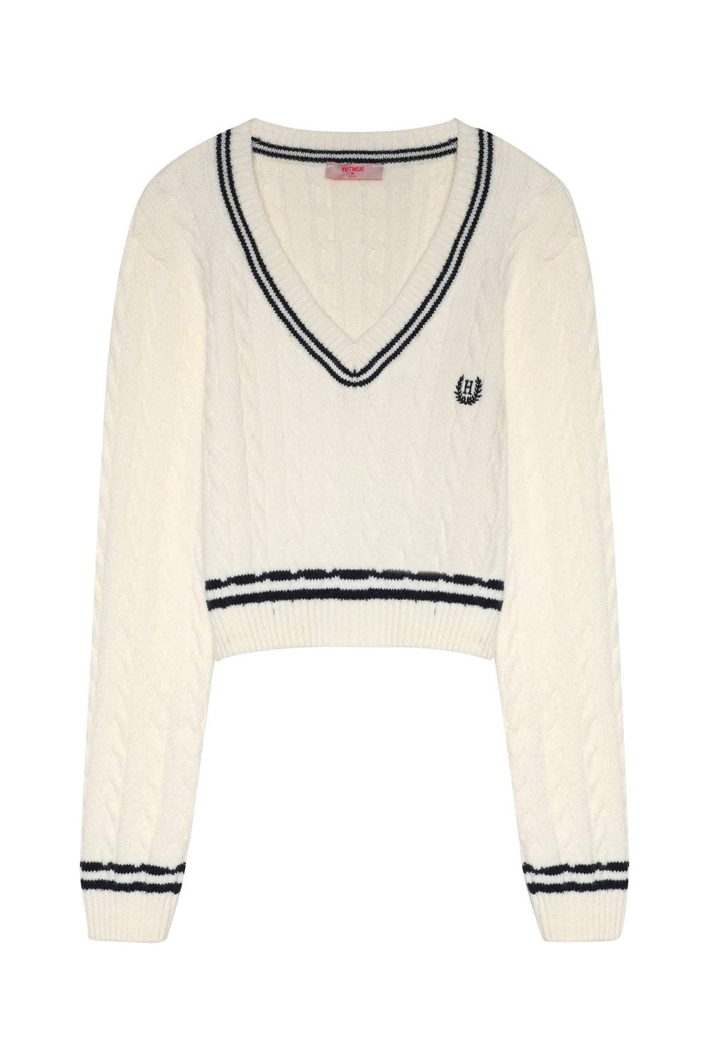 V-Neck Striped Knitwear Sweater Ecru-Navy Blue
