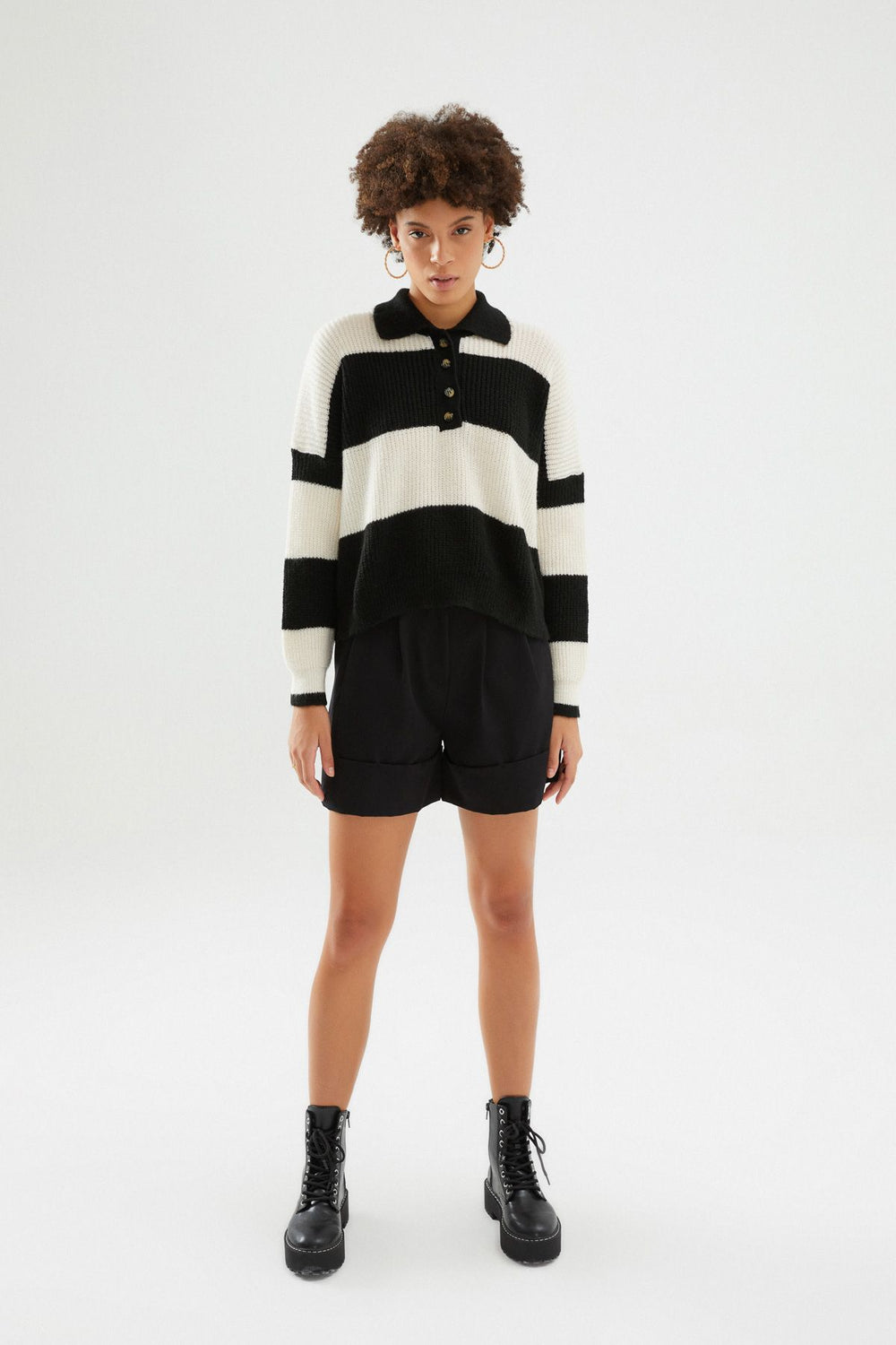 Polo Neck Striped Sweater Black