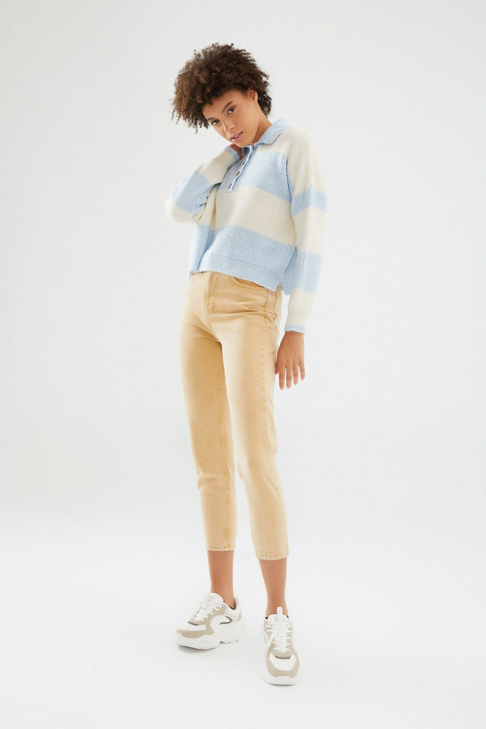 Polo Neck Striped Sweater Baby Blue