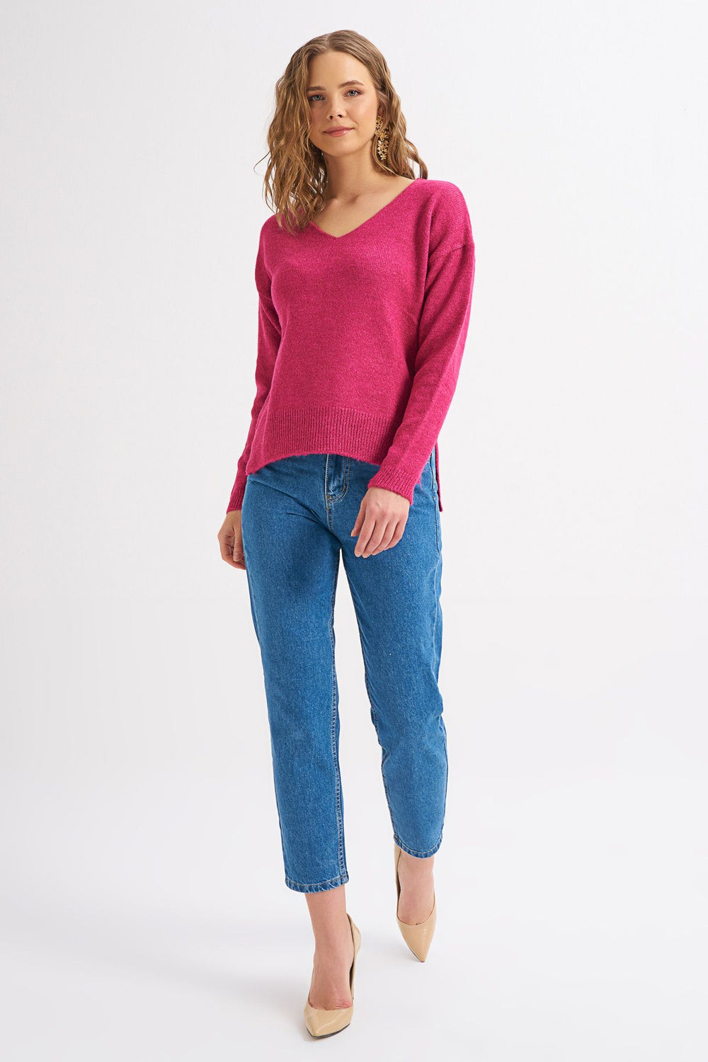 V Neck Sweater Fuchsia