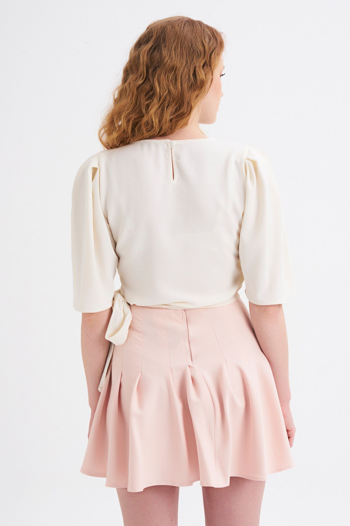 In addition to reflecting a modern look on the vintage style, padded blouses with a useful modern design with side ties, with which you can create magnificent combinations, are in front of you with different color options.