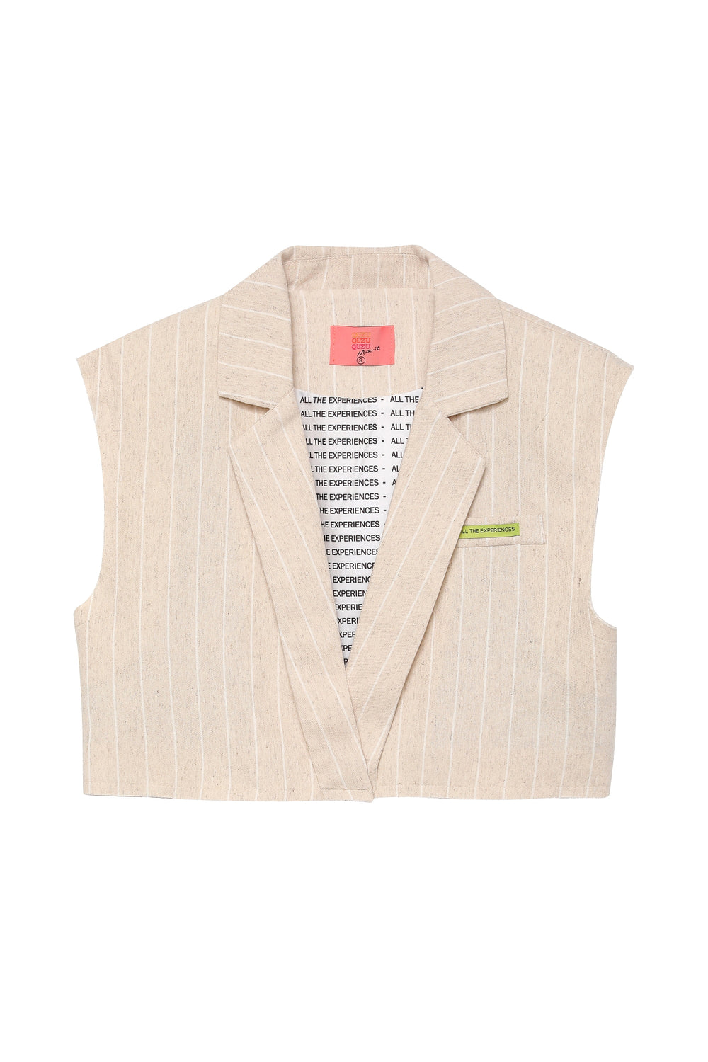 Astarı Yazı Baskılı Çizgili Yelek Naturel