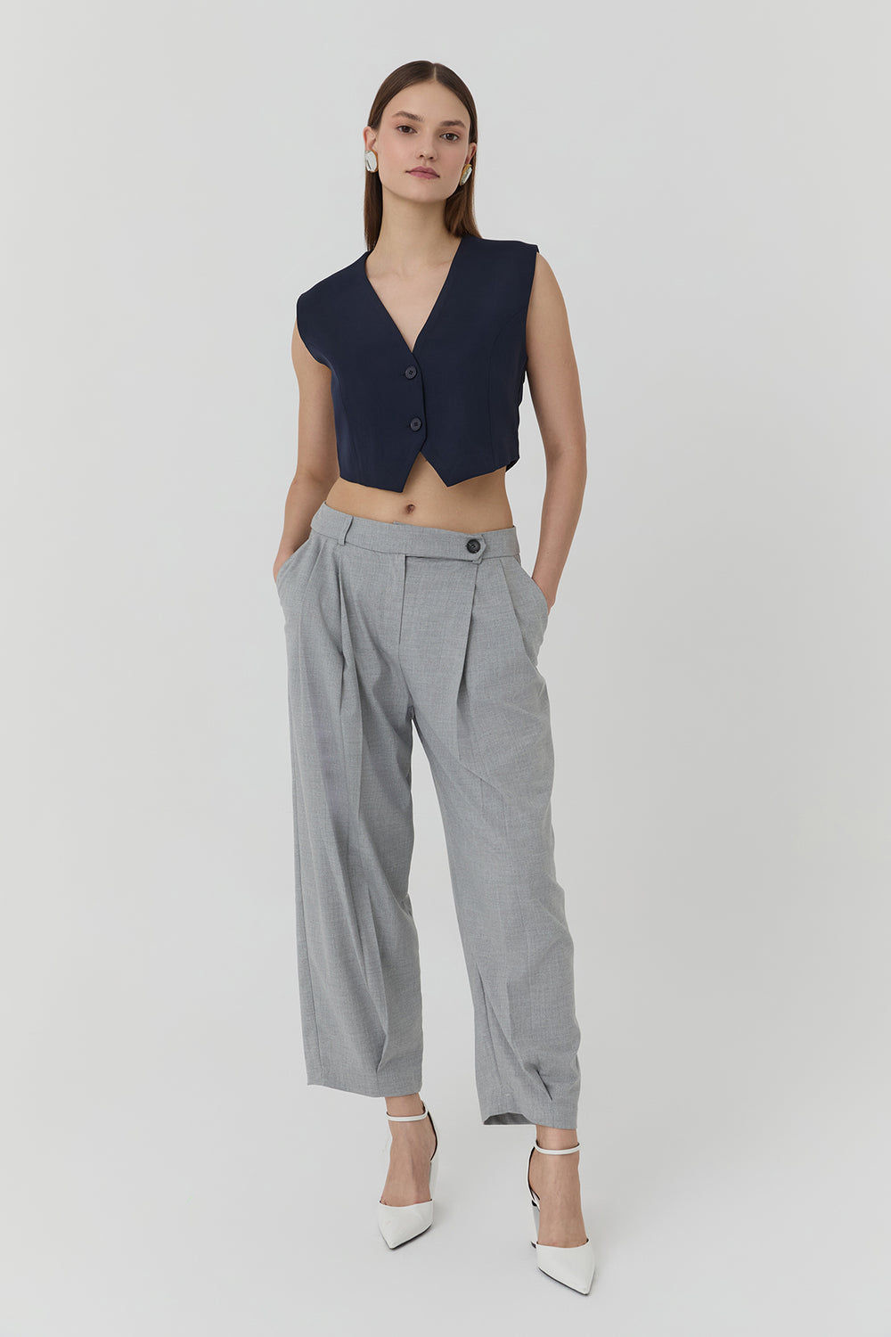 Düğme Detaylı Kısa Yelek Ceket Lacivert
