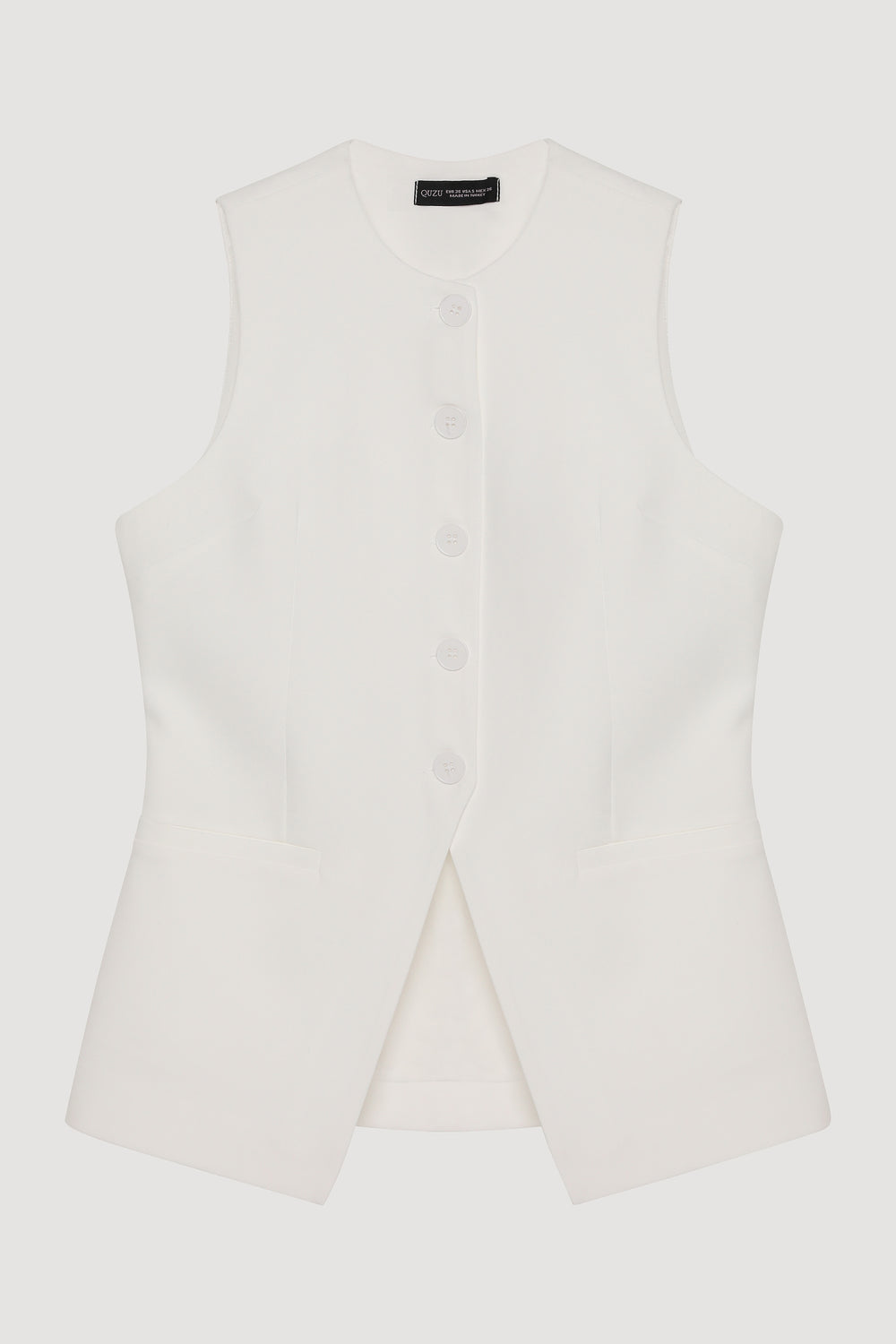 Düğmeli V Kesim Kolsuz Yelek Ekru