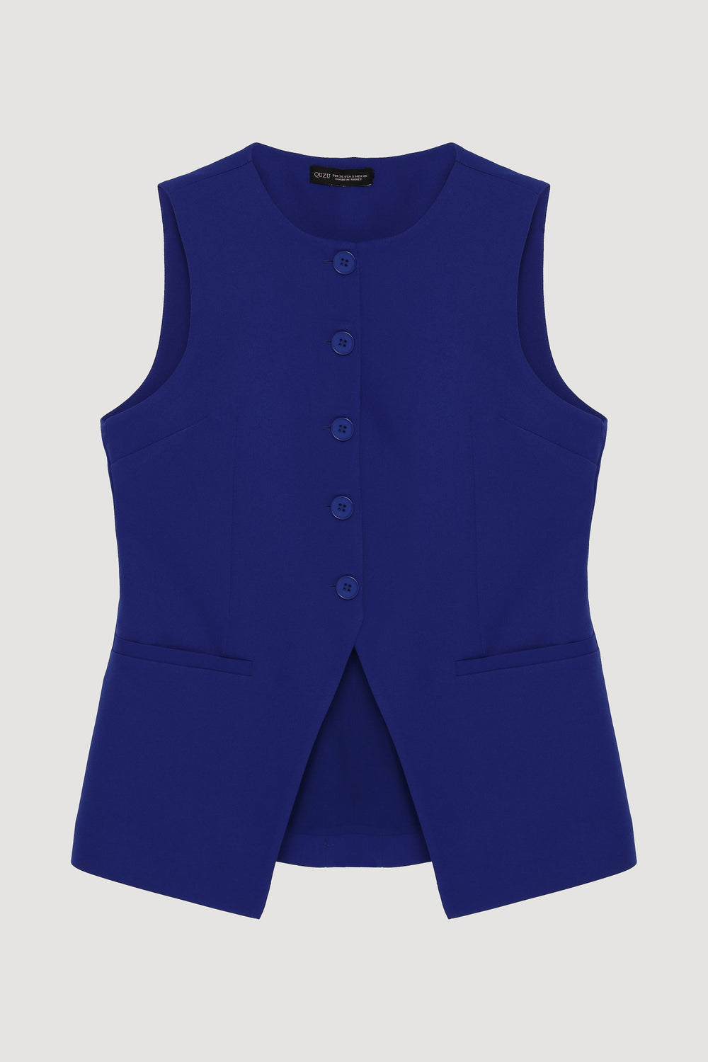Düğmeli V Kesim Kolsuz Yelek Sax