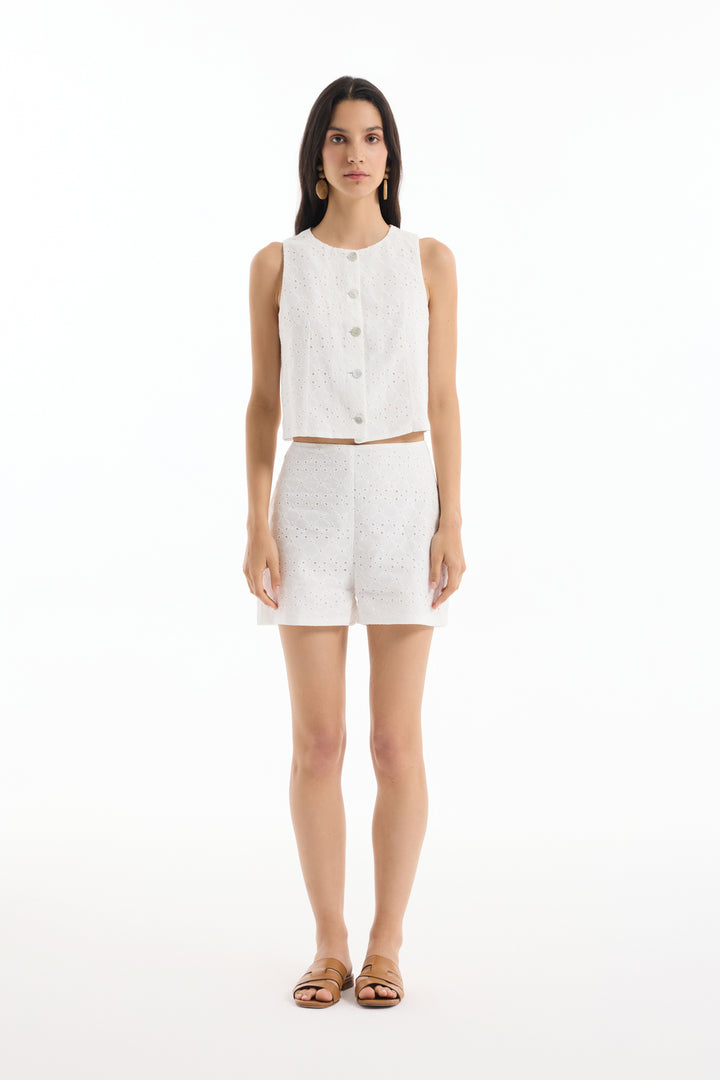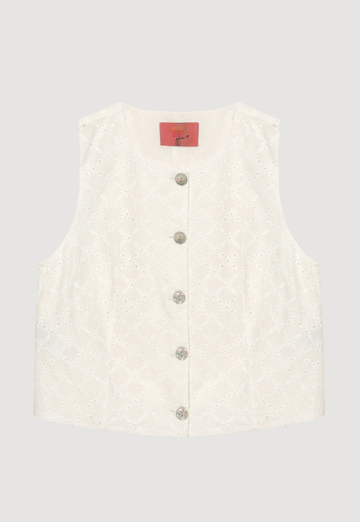 Fistolu Düğmeli Kolsuz Yelek Ekru