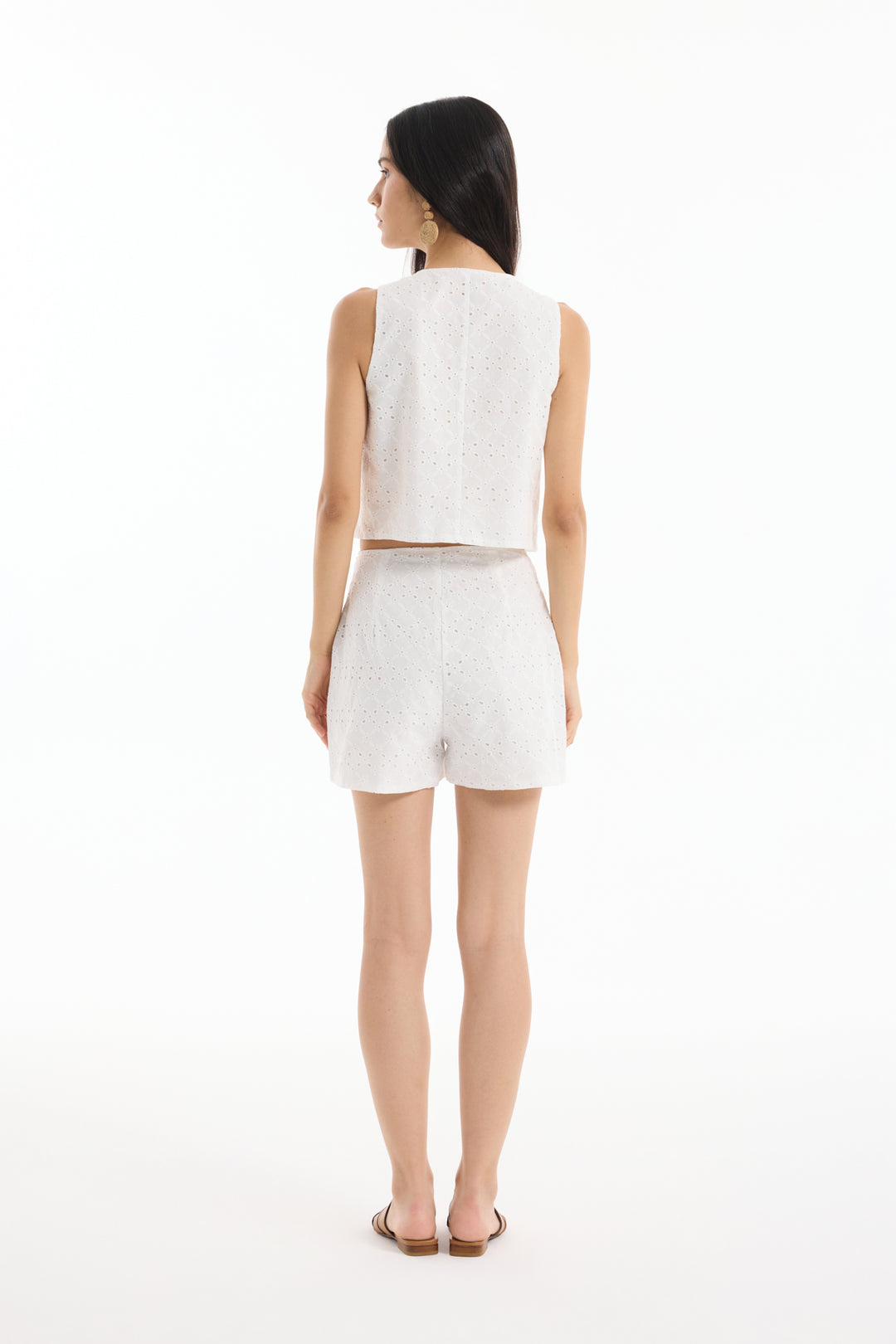 İçi kendi renginden astarlı, fisto detaylı, yuvarlak yaka, kolsuz, düğme kapamalı, modern görünümlü crop yelek.