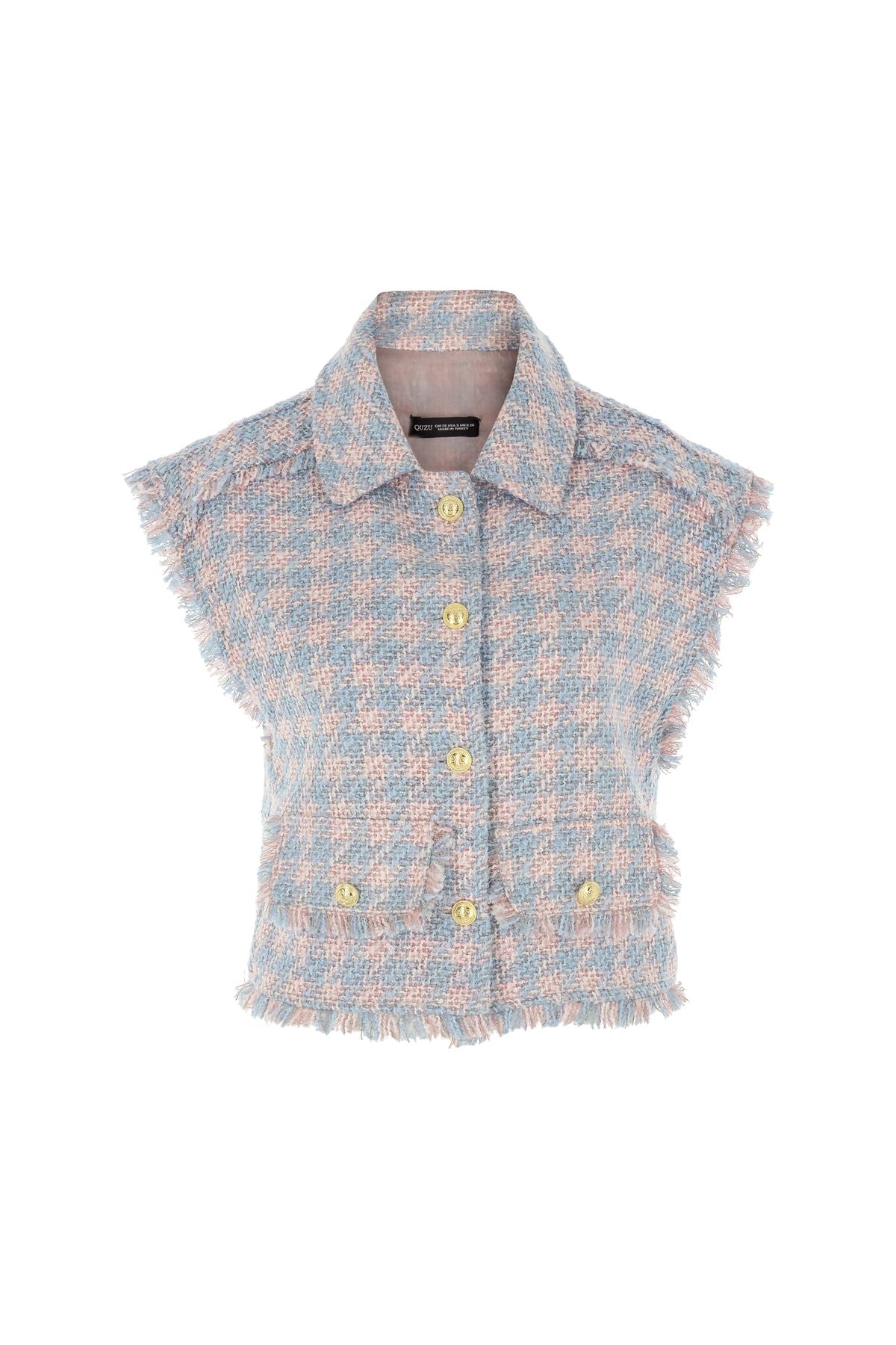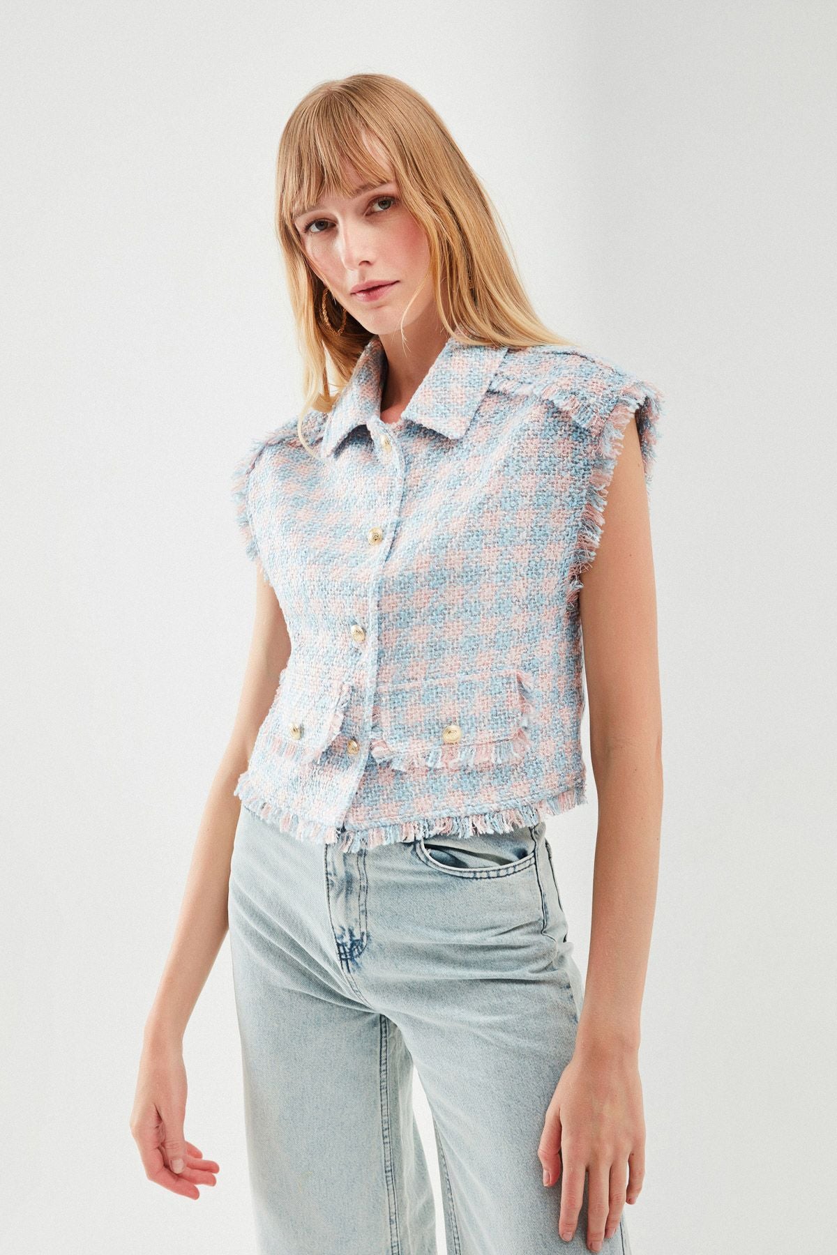 Tasseled Plaid Vest Jacket Powder