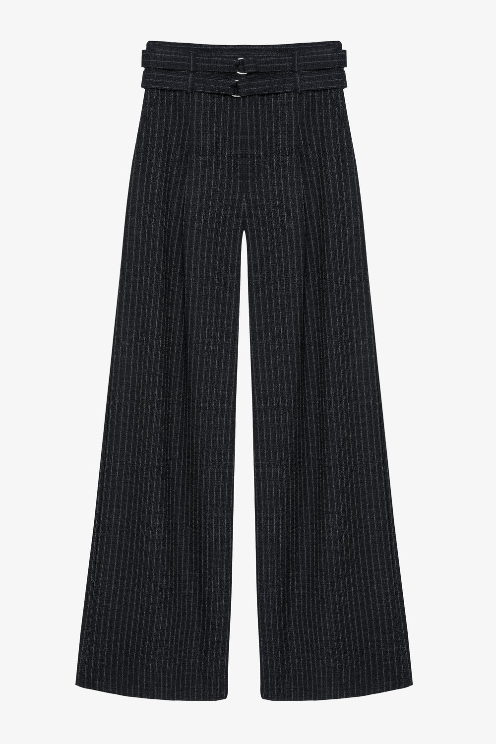 Çizgili Çift Kemerli Palazzo Pantolon Lacivert