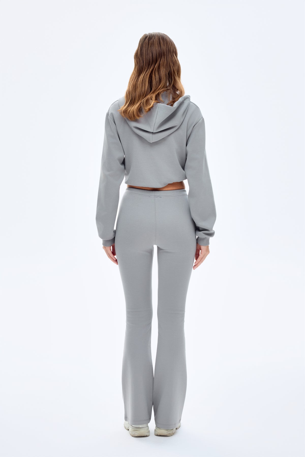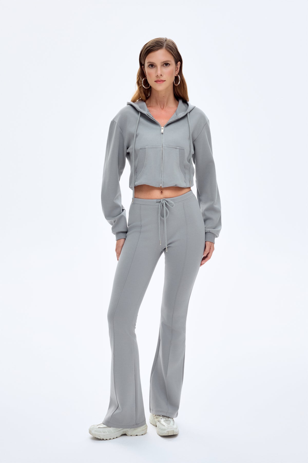 Beli Bağcıklı Dikiş Detaylı İspanyol Paça Pantolon Gri