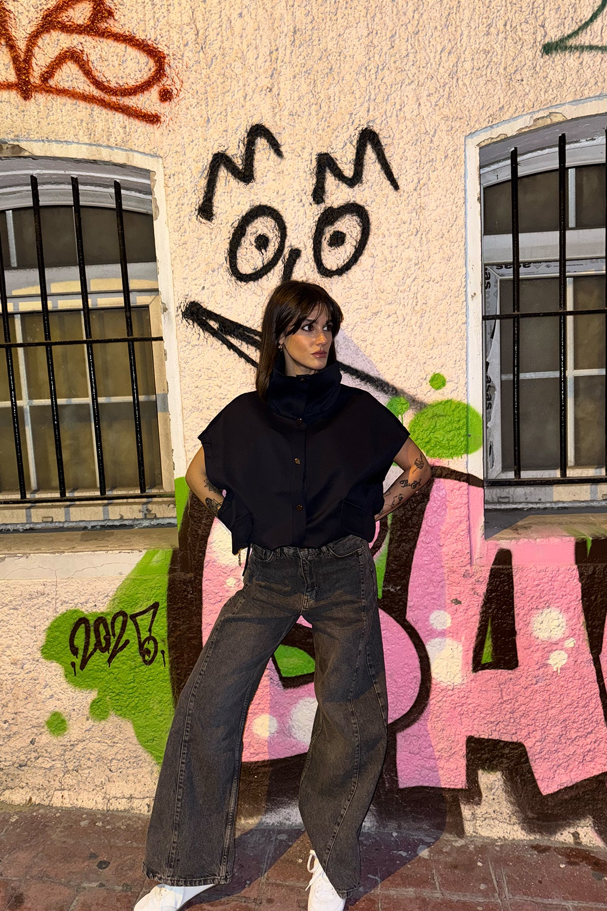 Çıtçıt Düğmeli Cepli Yumuşak Dokulu Oversize Yelek Siyah