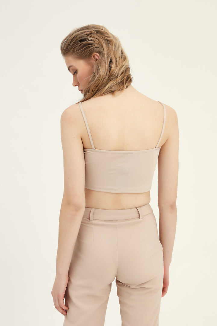 Straps Ruffle Detailed Bustier Beige