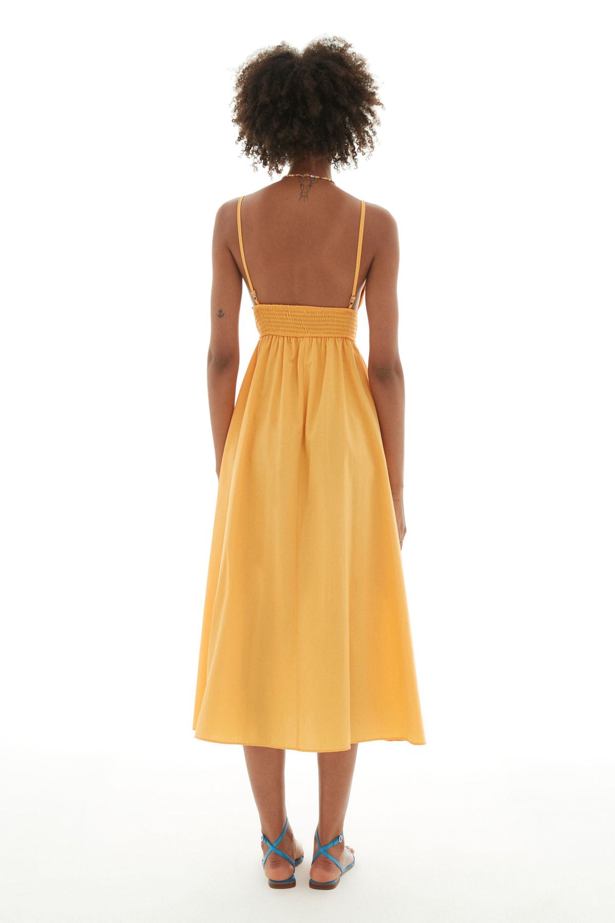 Long dress with straps, relaxed fit, adjustable straps, low-cut neckline, gipee.