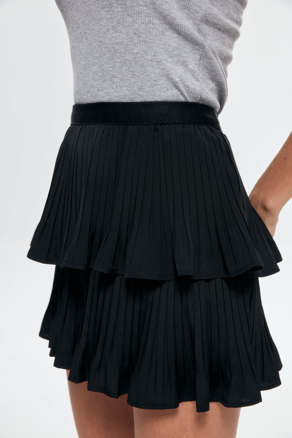 Elastic Waist Pleat Detailed Mini Skirt Black