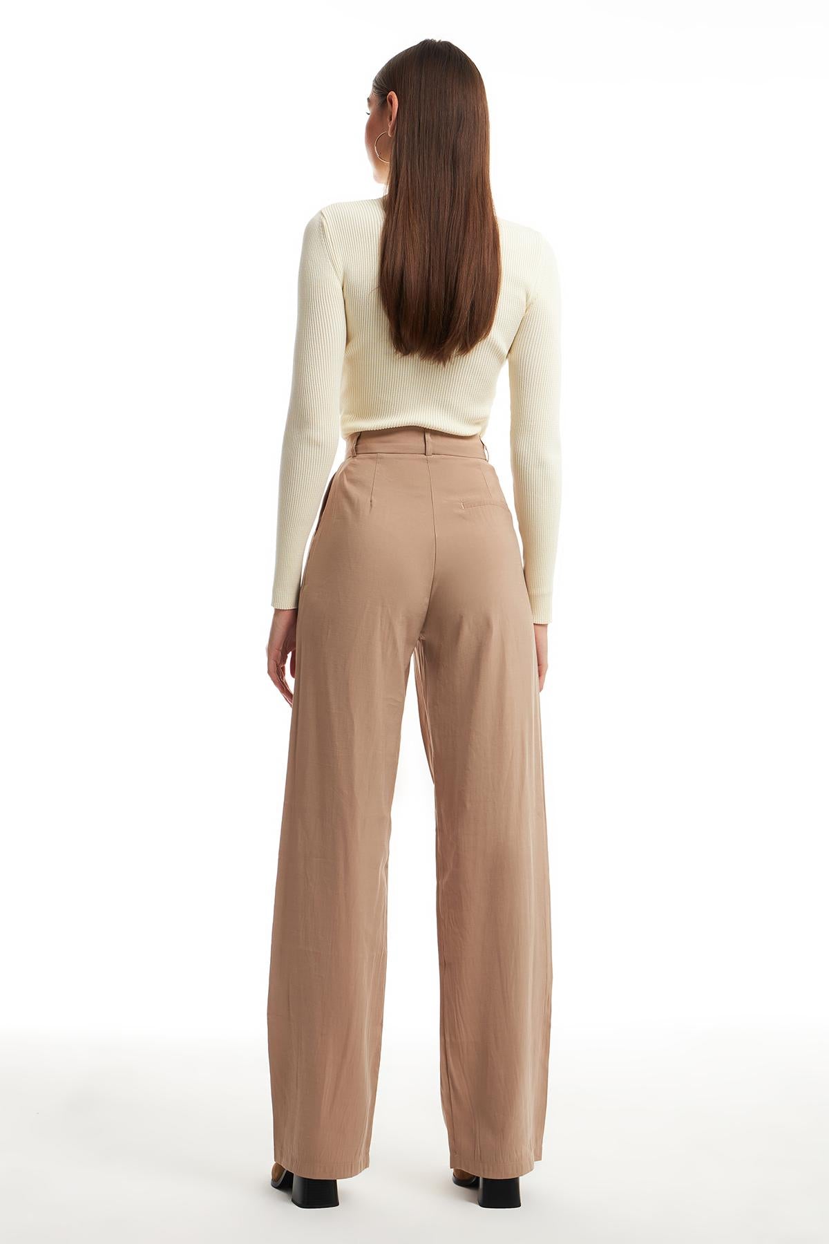 Wide Leg Fabric Trousers Beige