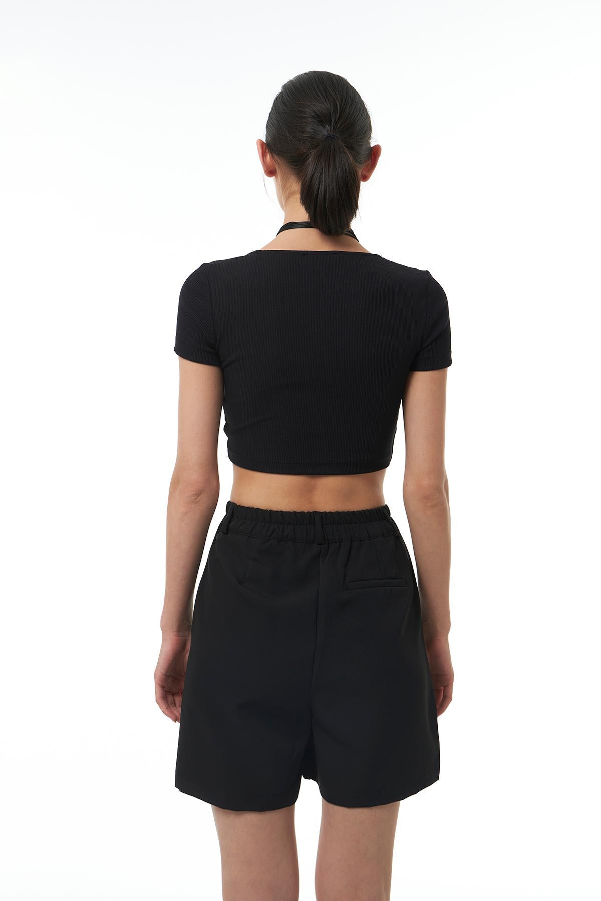 The key piece of the wardrobe, the blouse model draws attention with its collar cut and body-hugging structure. Crop blouse model can adapt to all combinations with its color and cut. Short sleeve crop blouse model has a flexible structure with lycra content.
