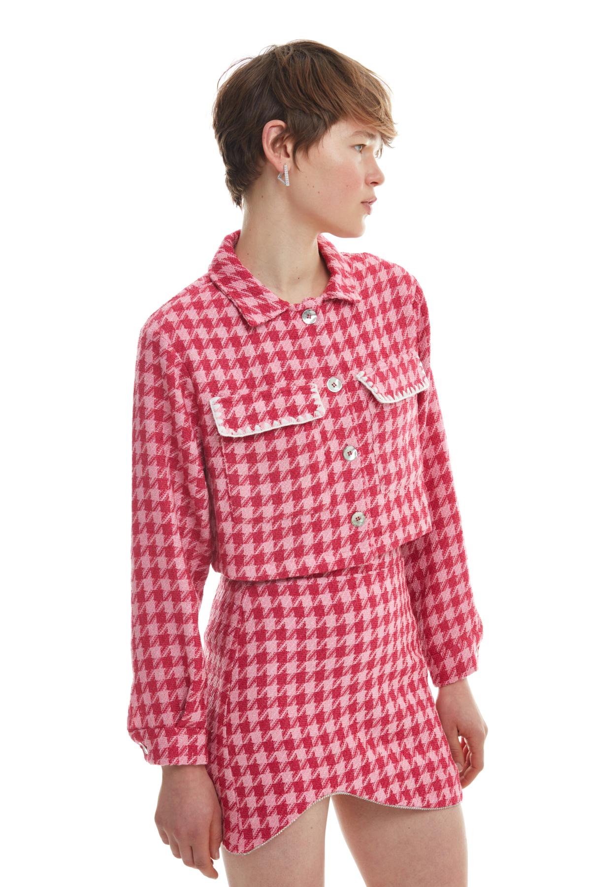 Pocket Detailed Tweed Crop Shirt Fuchsia