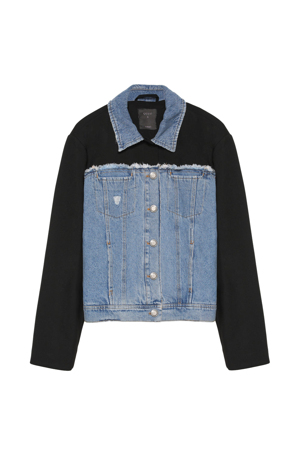 Denim Match Detaylı Düğmeli Ceket Siyah