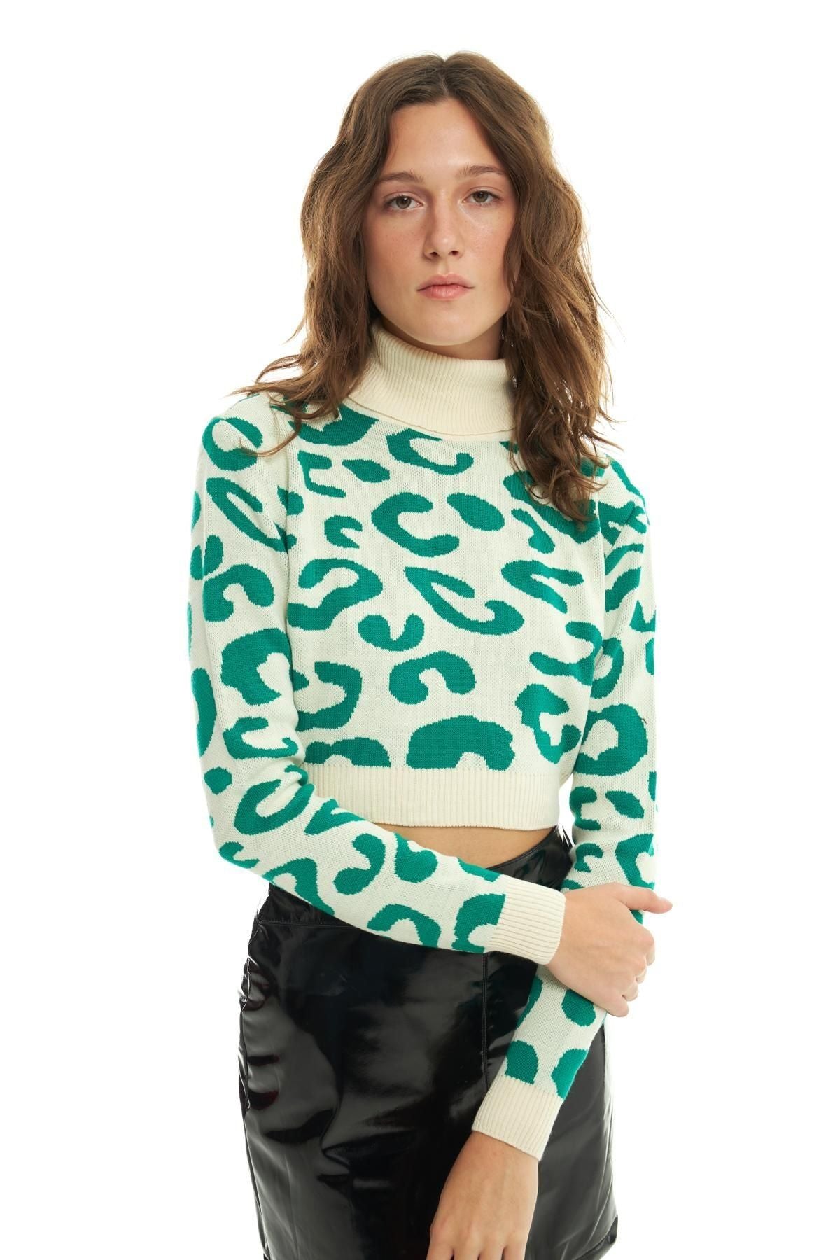 Crop-fit, long-sleeved, patterned turtleneck sweater.