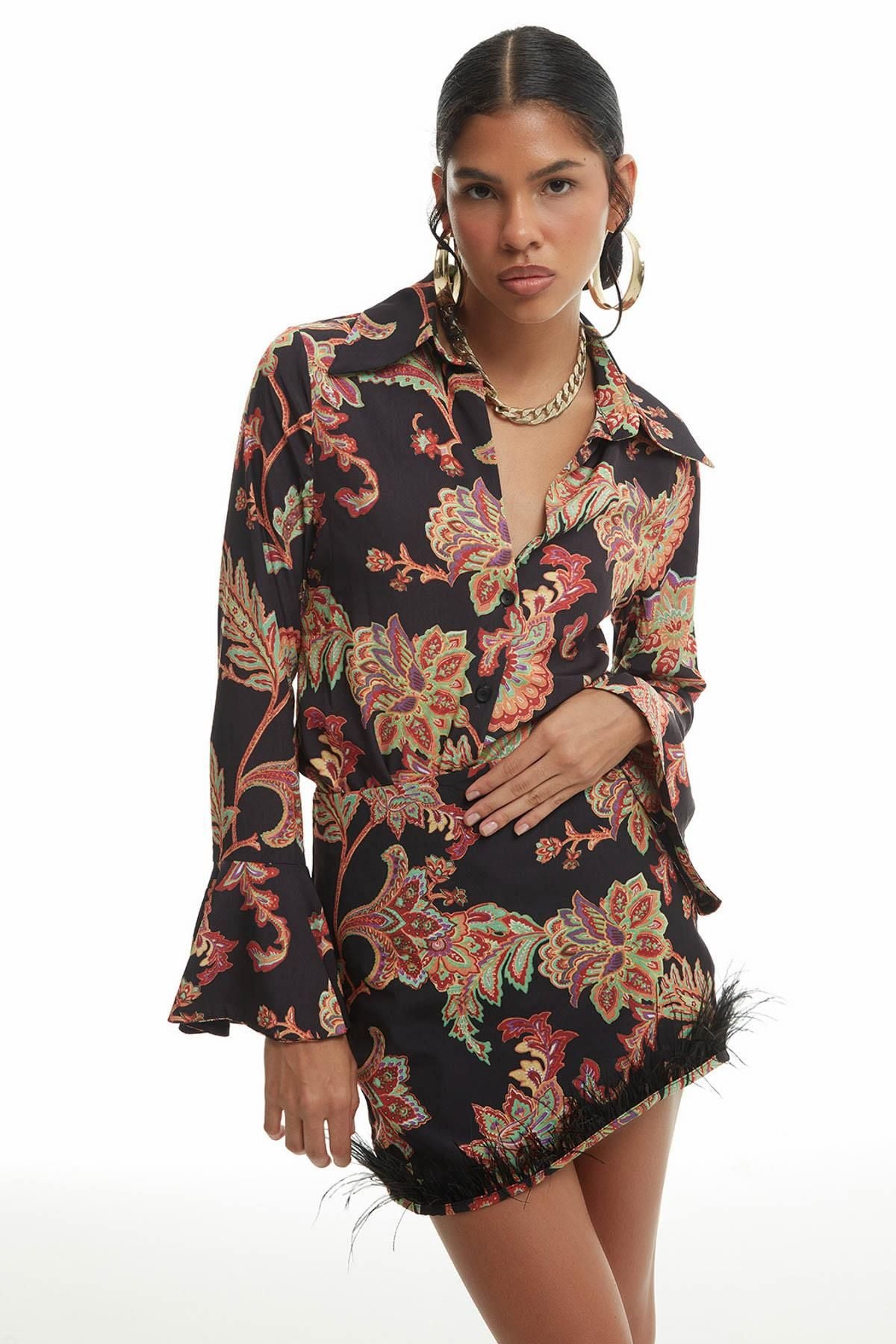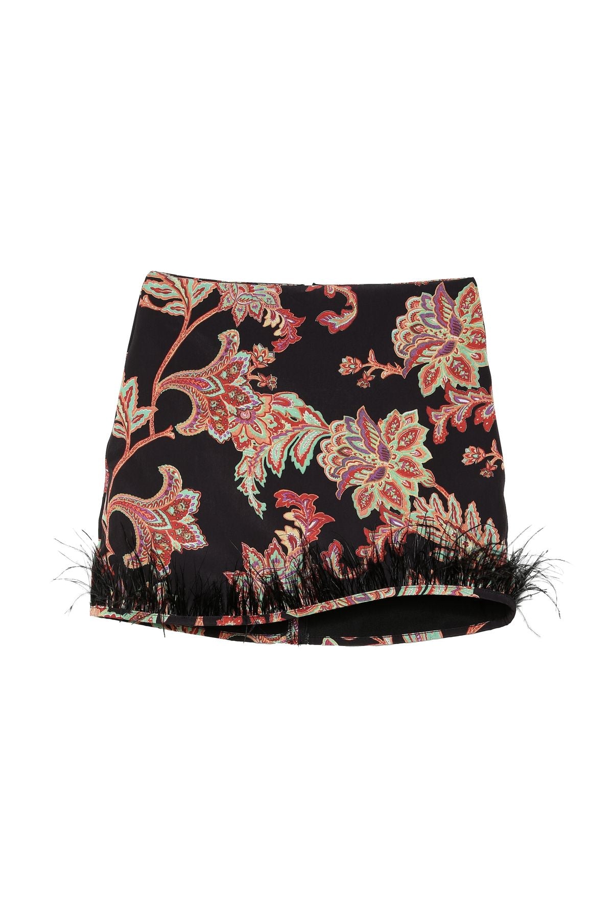 Patterned Feather Detailed Mini Skirt Black