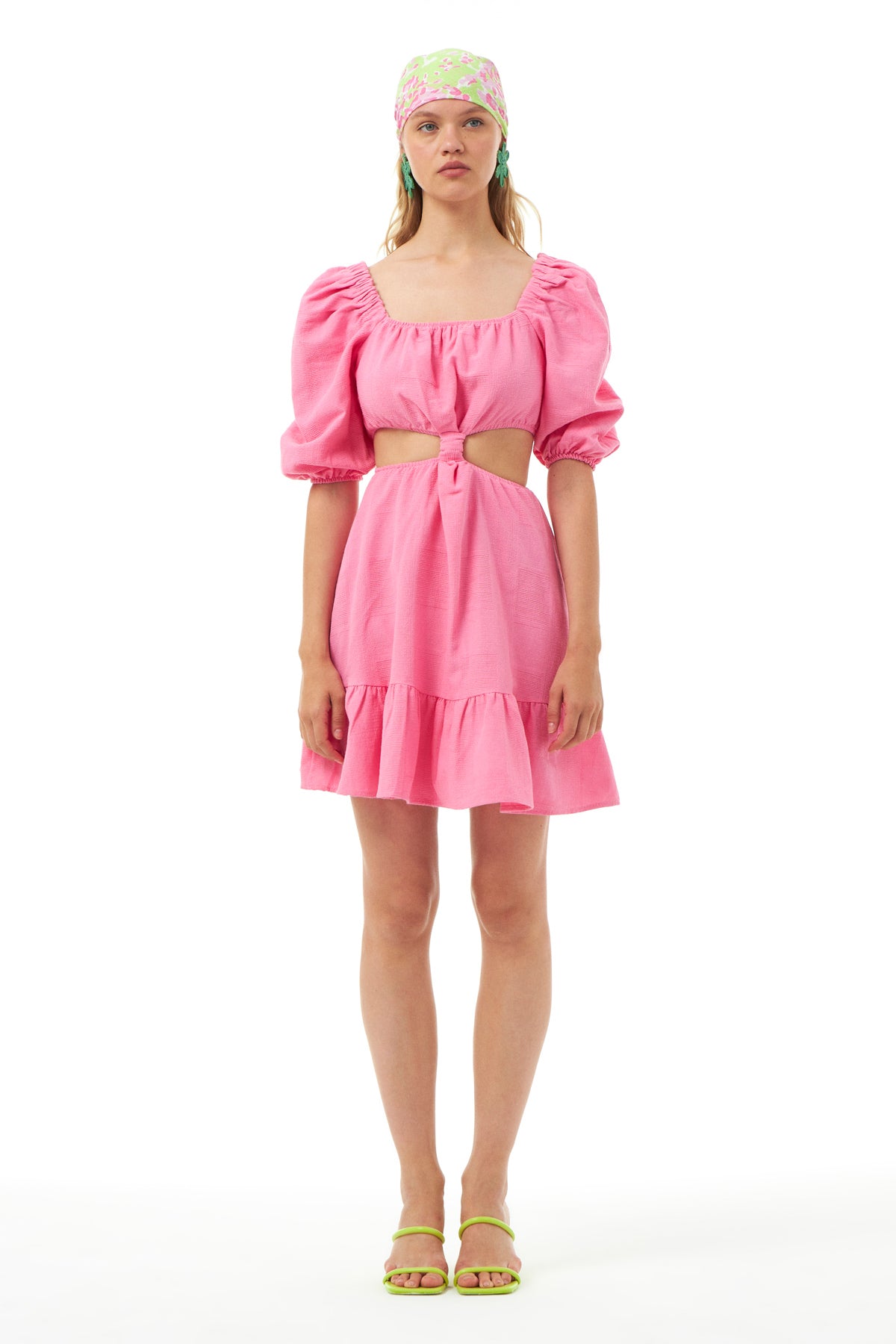 Ruffle Cut Out Dress Pink