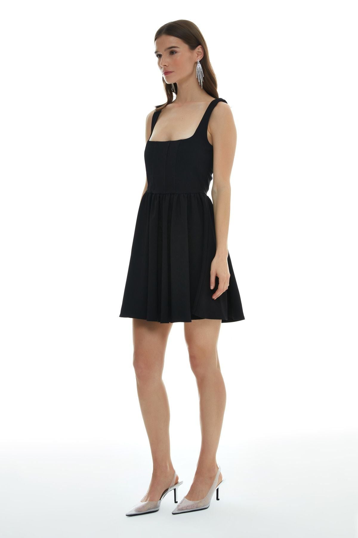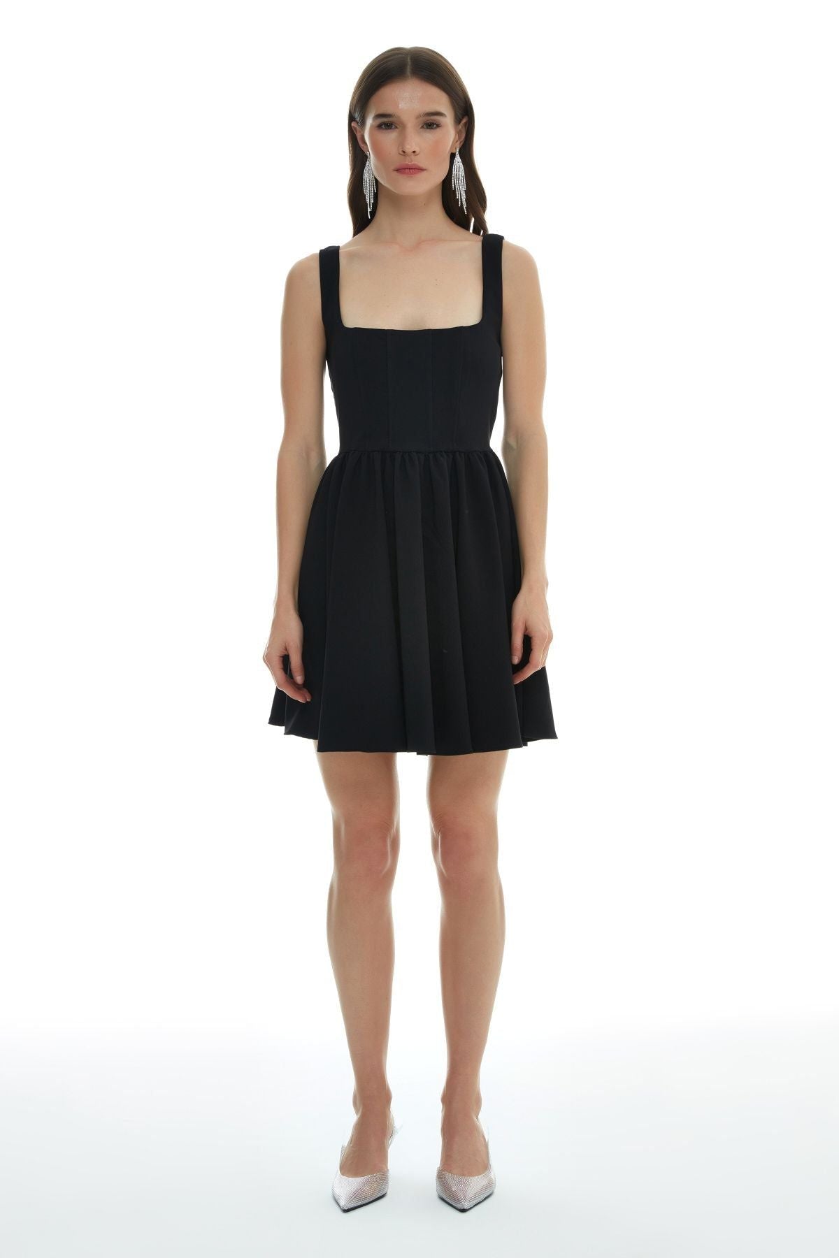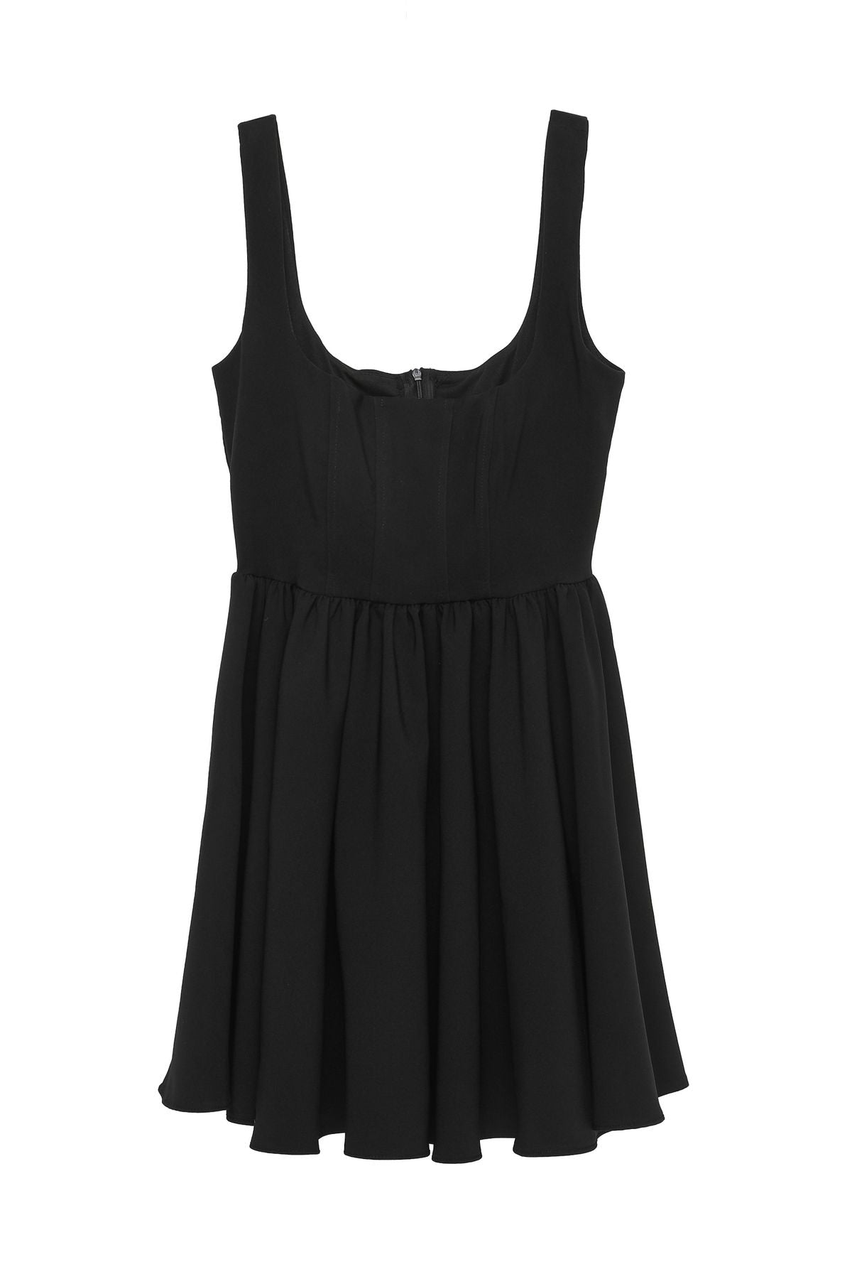 Gathered waist, pleated detail, thick straps, concealed zipper on the back, underwire detail on the chest, mini dress