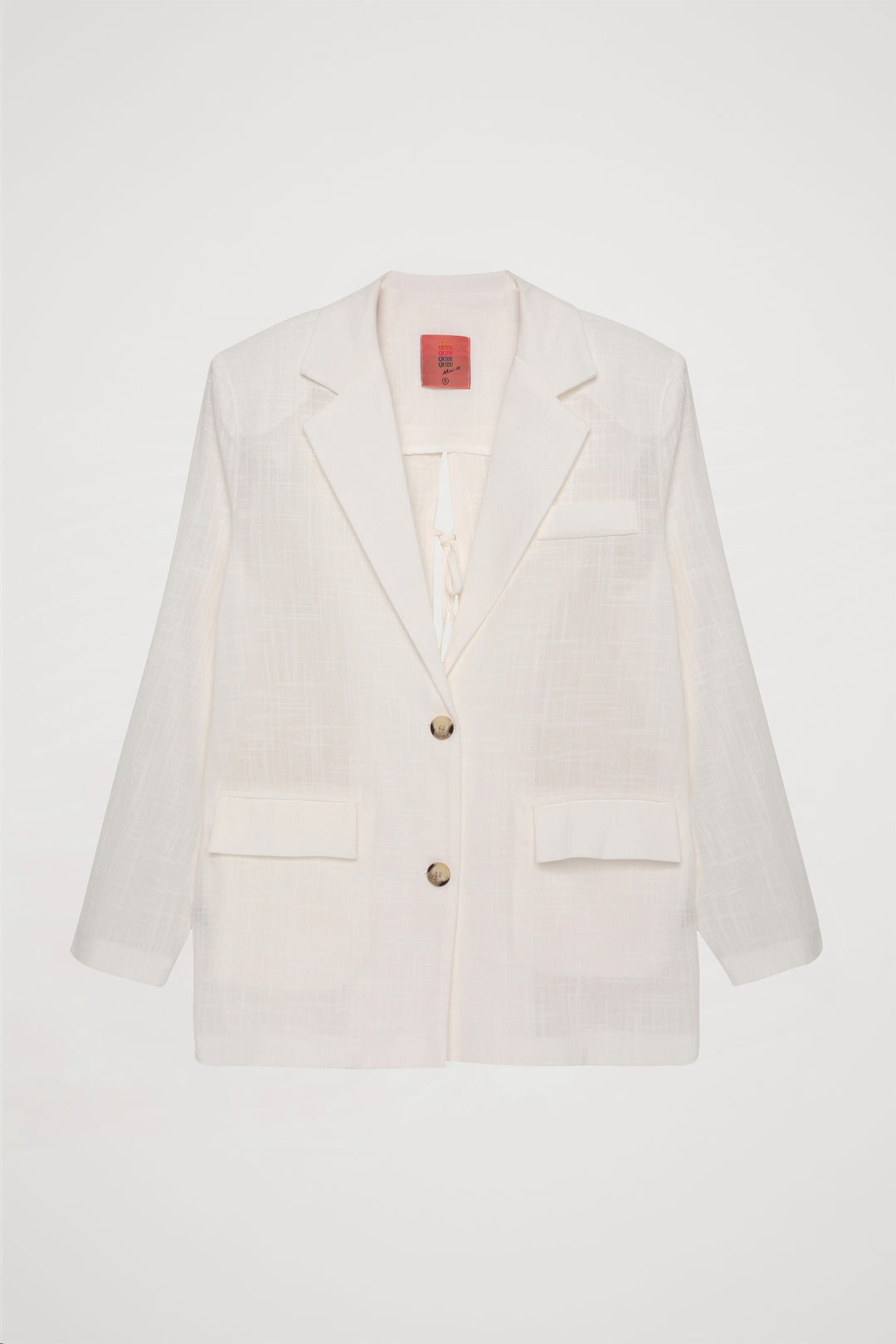 Kolu düğme aksesuarlı, bağcıklı sırt detayı bulunan, uzun kollu, ince çizgili, düğme kapamalı, çift cep kapaklı, blazer ceket.