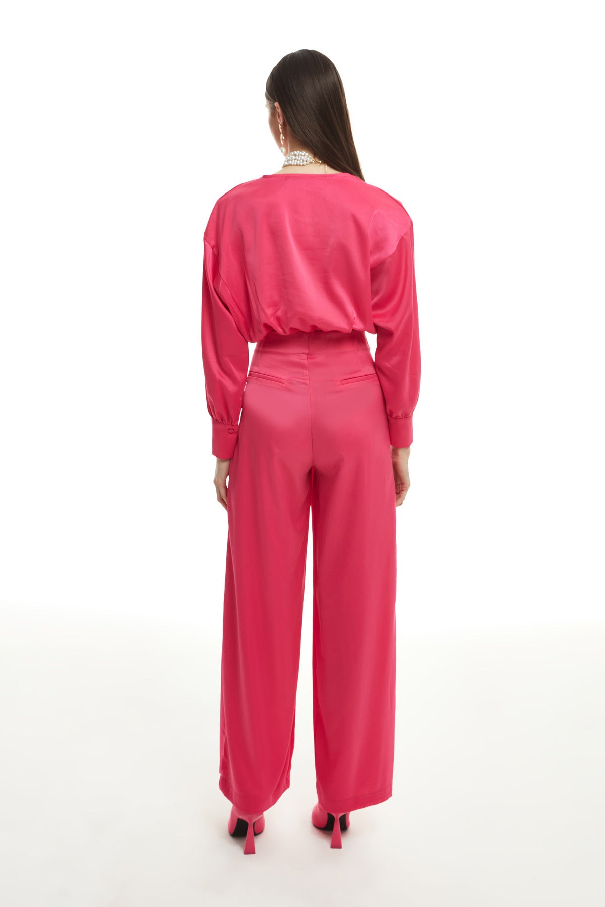 Double Breasted Satin Blouse Fuchsia