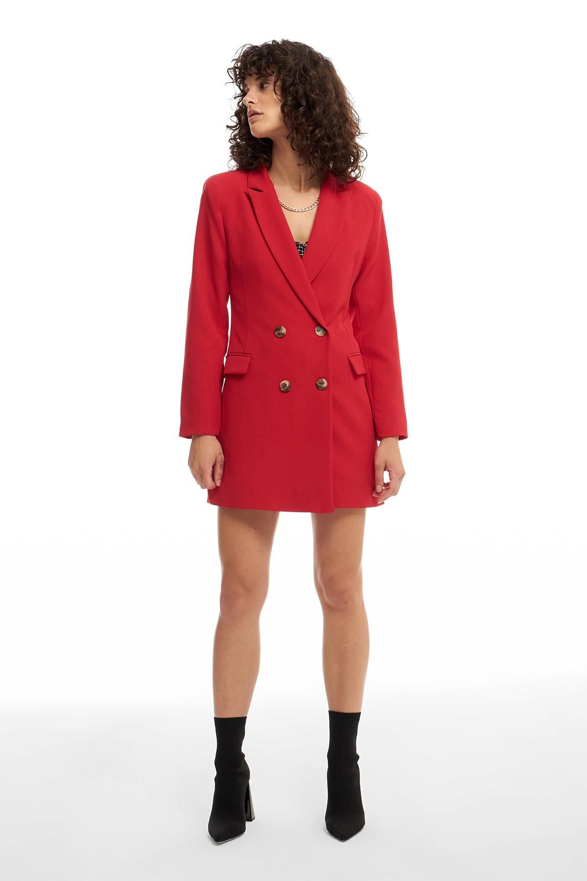 Double Breasted Collar Jacket Dress Red