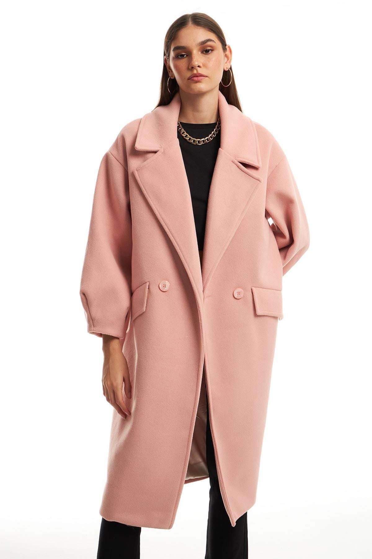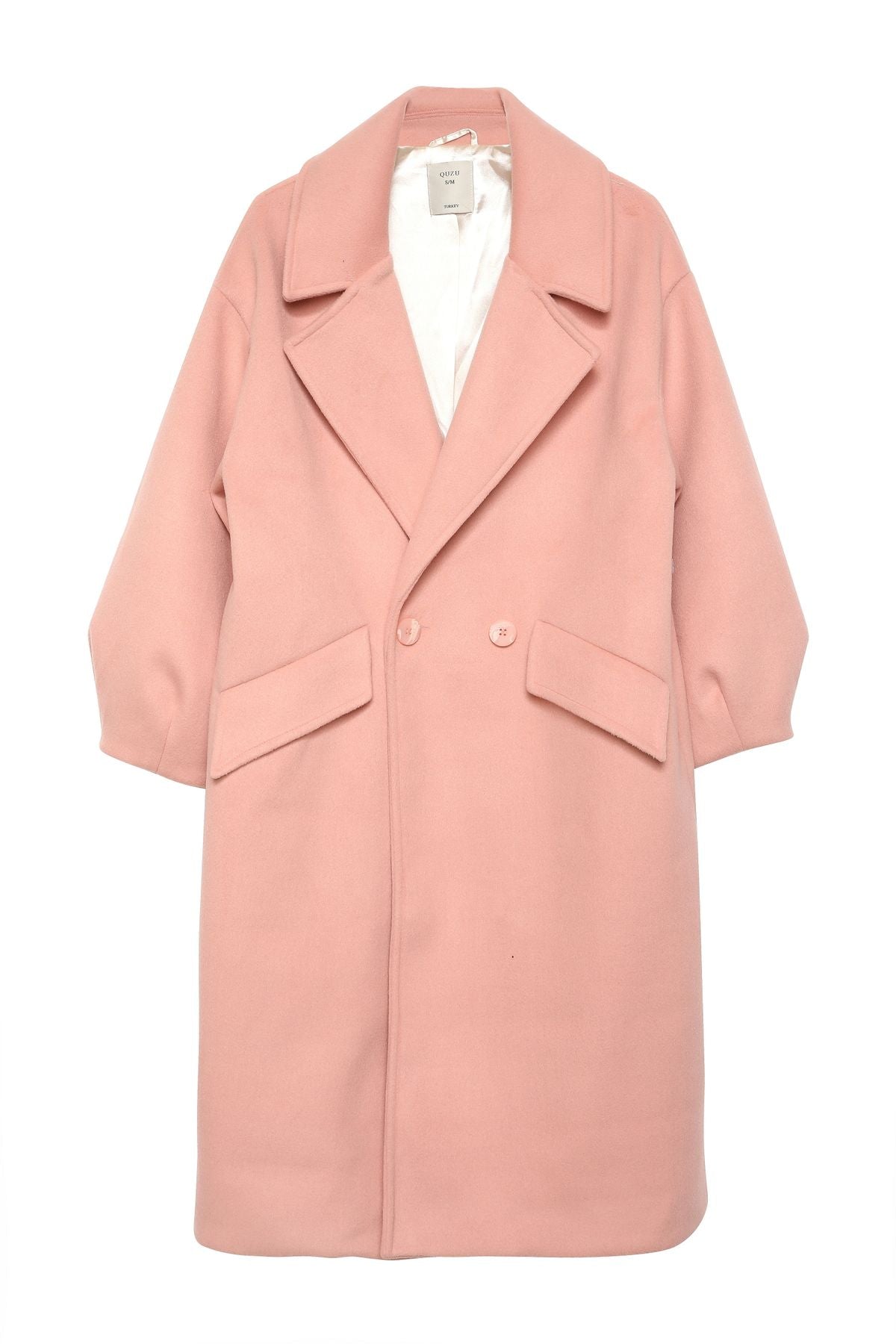 Double Breasted Collar Oversize Coat Pink