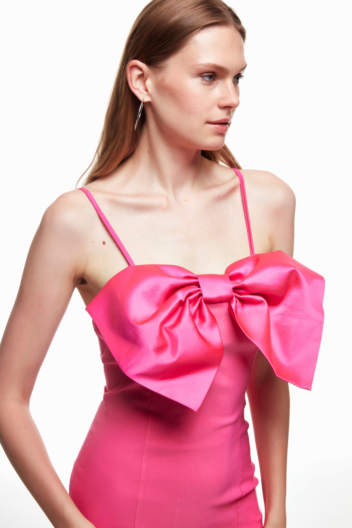 Ribbon Detailed Strappy Mini Dress Fuchsia