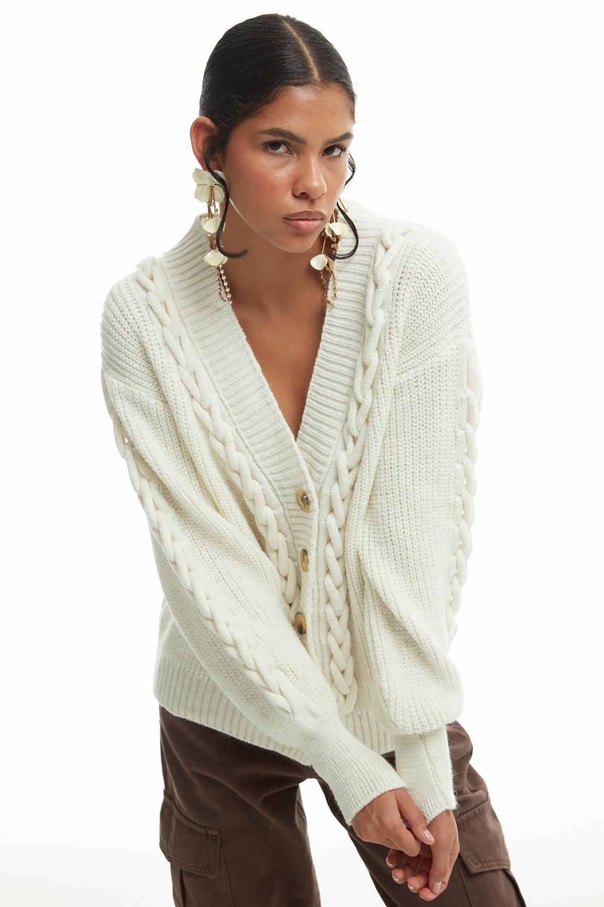 Knit Detailed Cardigan Ecru