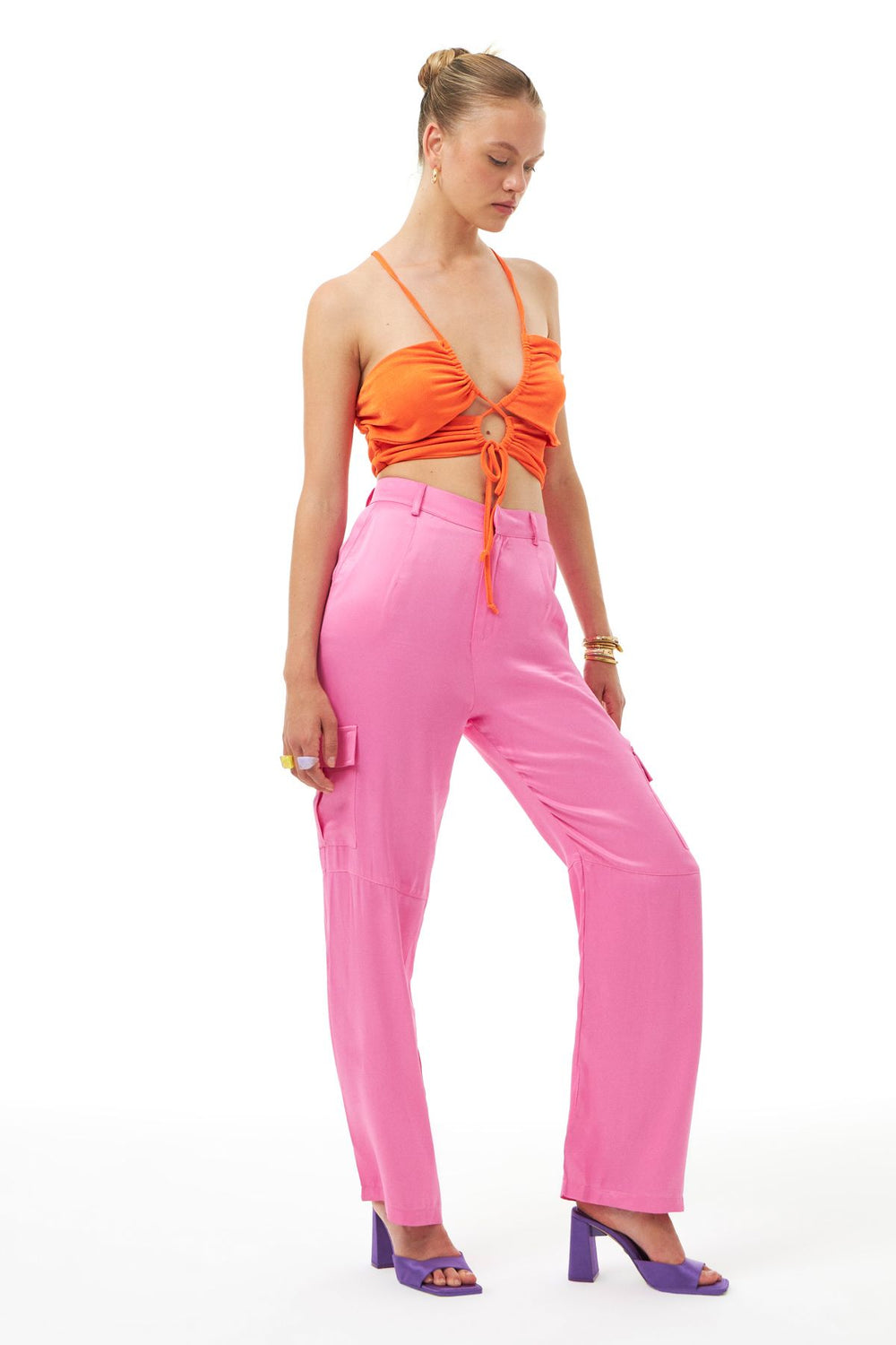 Satin Cargo Pants Neon Pink