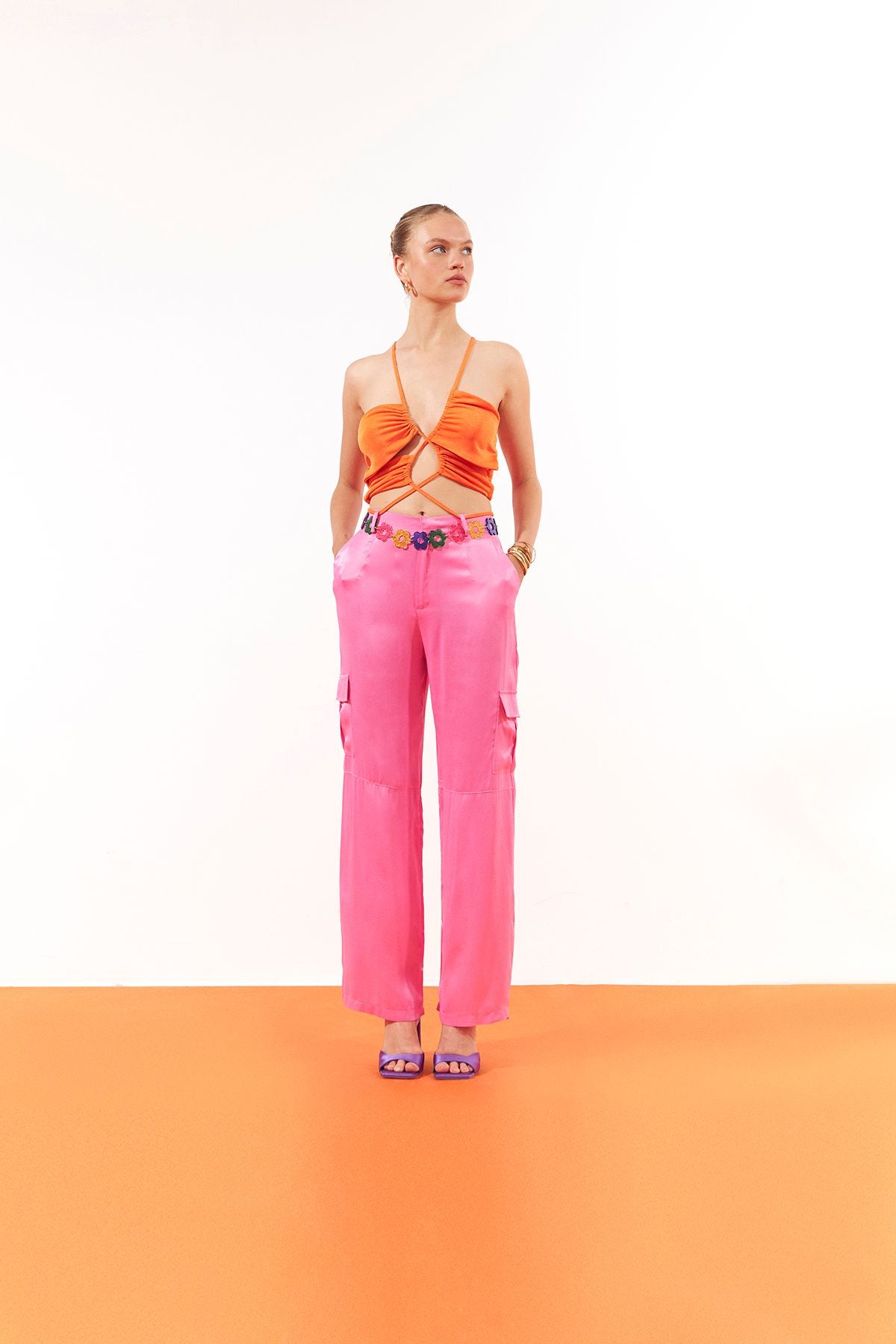 The cargo pocket trousers model, which provides comfort as well as being stylish, has been updated with fashion trends. Designed in accordance with the weather and lightness of the season, the viscose-containing satin wide-leg trousers model carries its elegance from day to night with its texture and design. The cargo pocket wide leg trousers model elevates its style and makes it look stylish even when combined with basic models. By choosing the satin cargo pocket trousers model, you can make effective touches to your style with its design and colors.