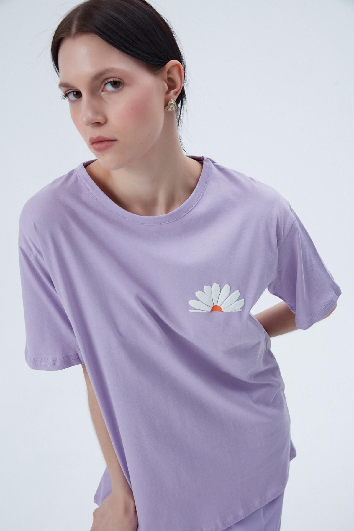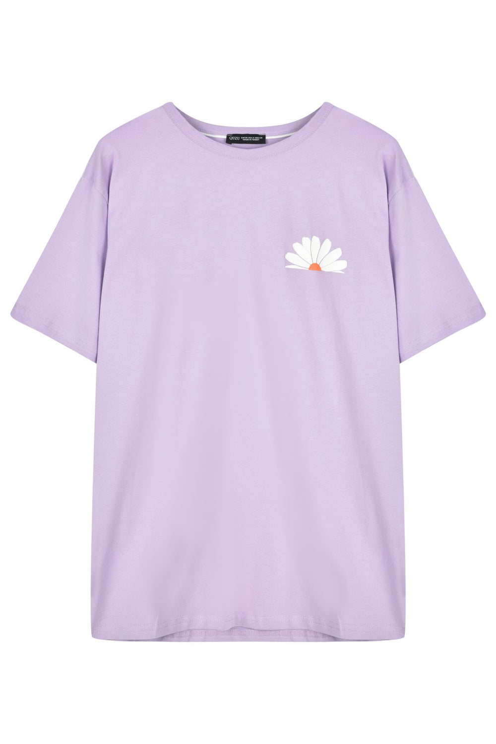 You can find the oversize printed t-shirt model in our collection, which is a candidate to be the favorite part of the season with its color and print! The front and back printed t-shirt model is 100% cotton.