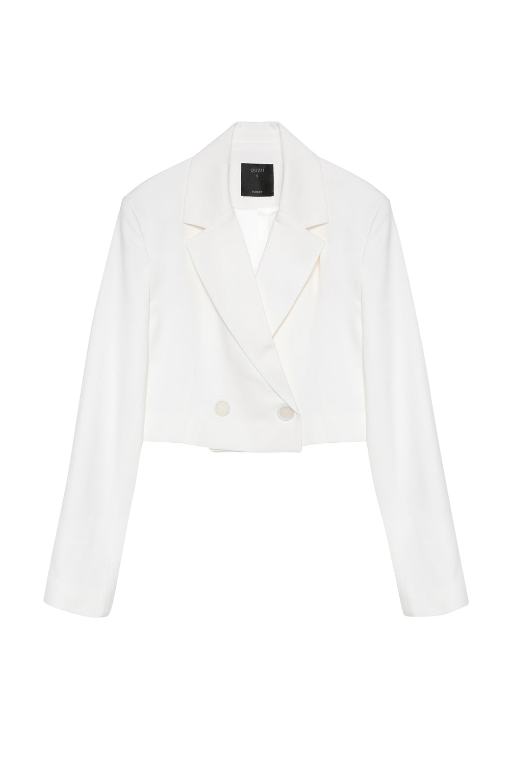 Vatka Detaylı Crop Blazer Ceket Ekru