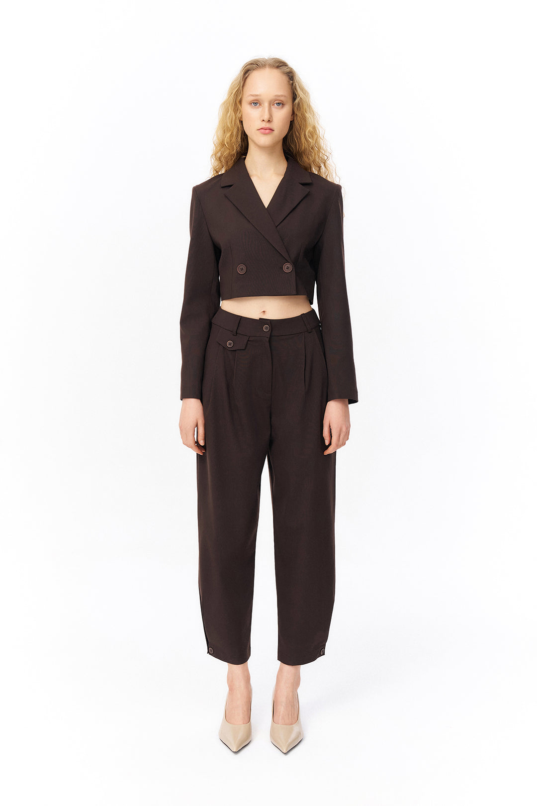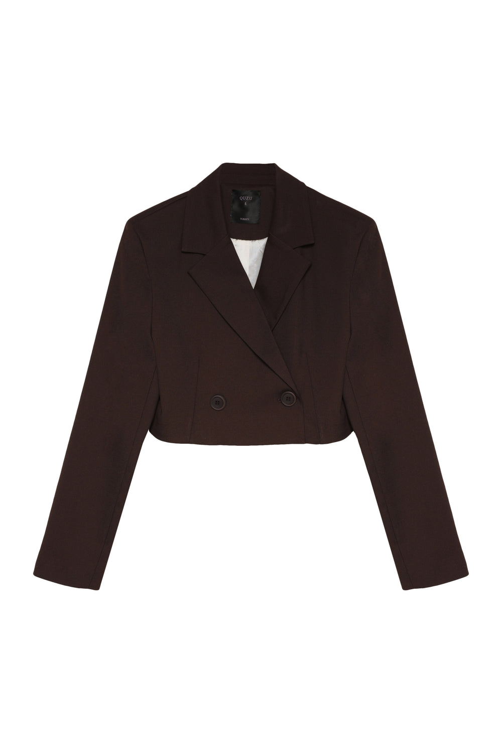 Vatka Detaylı Crop Blazer Ceket Kahverengi
